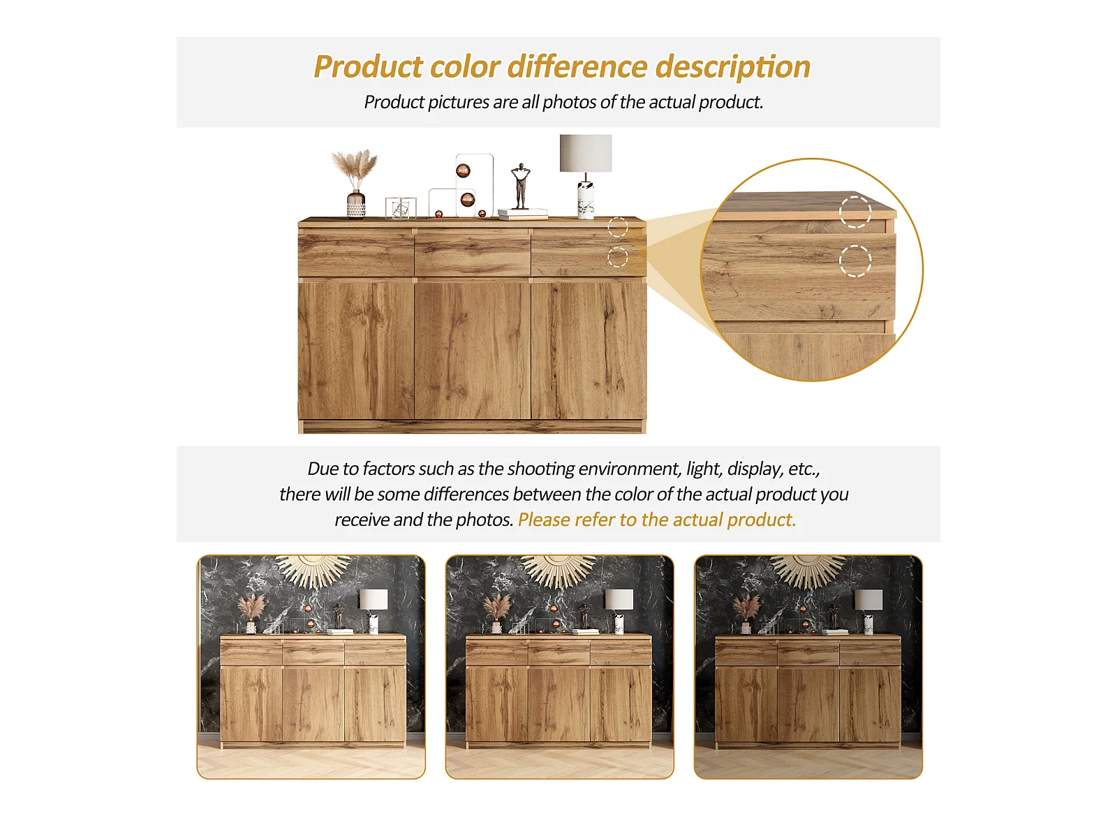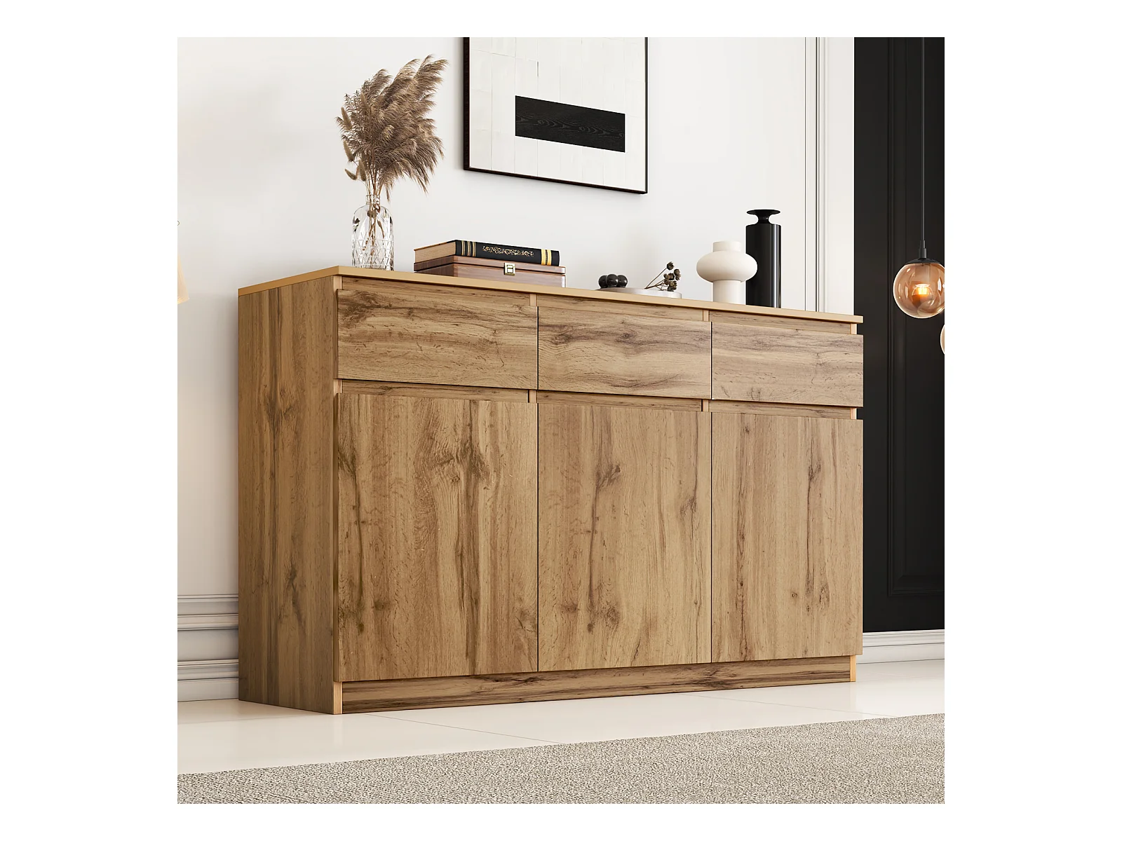 Aparador com efeito de madeira - Aparador multifuncional com 3 portas e 3 gavetas - Armário, 135 x 40 x 81 cm