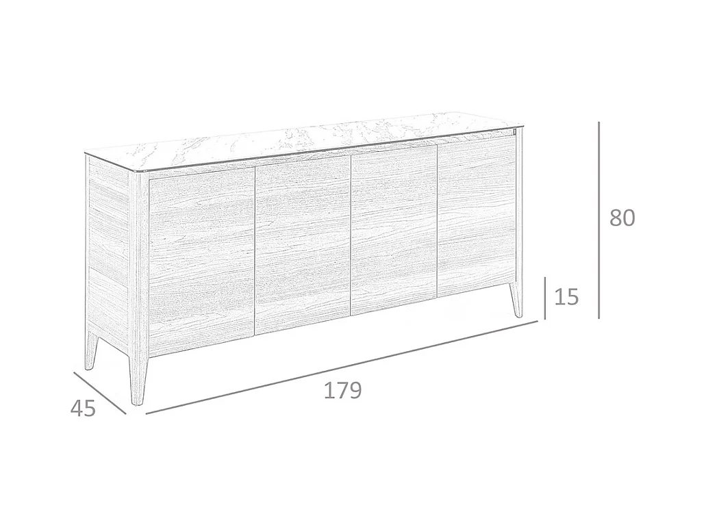 Aparador em nogueira com tampo de vidro a imitar mármore 3080 ANGEL CERDA