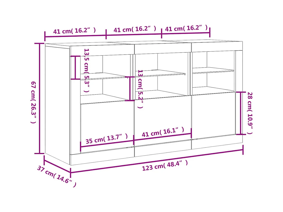 Aparadores c/ luzes LED 3 pcs derivados de madeira branco