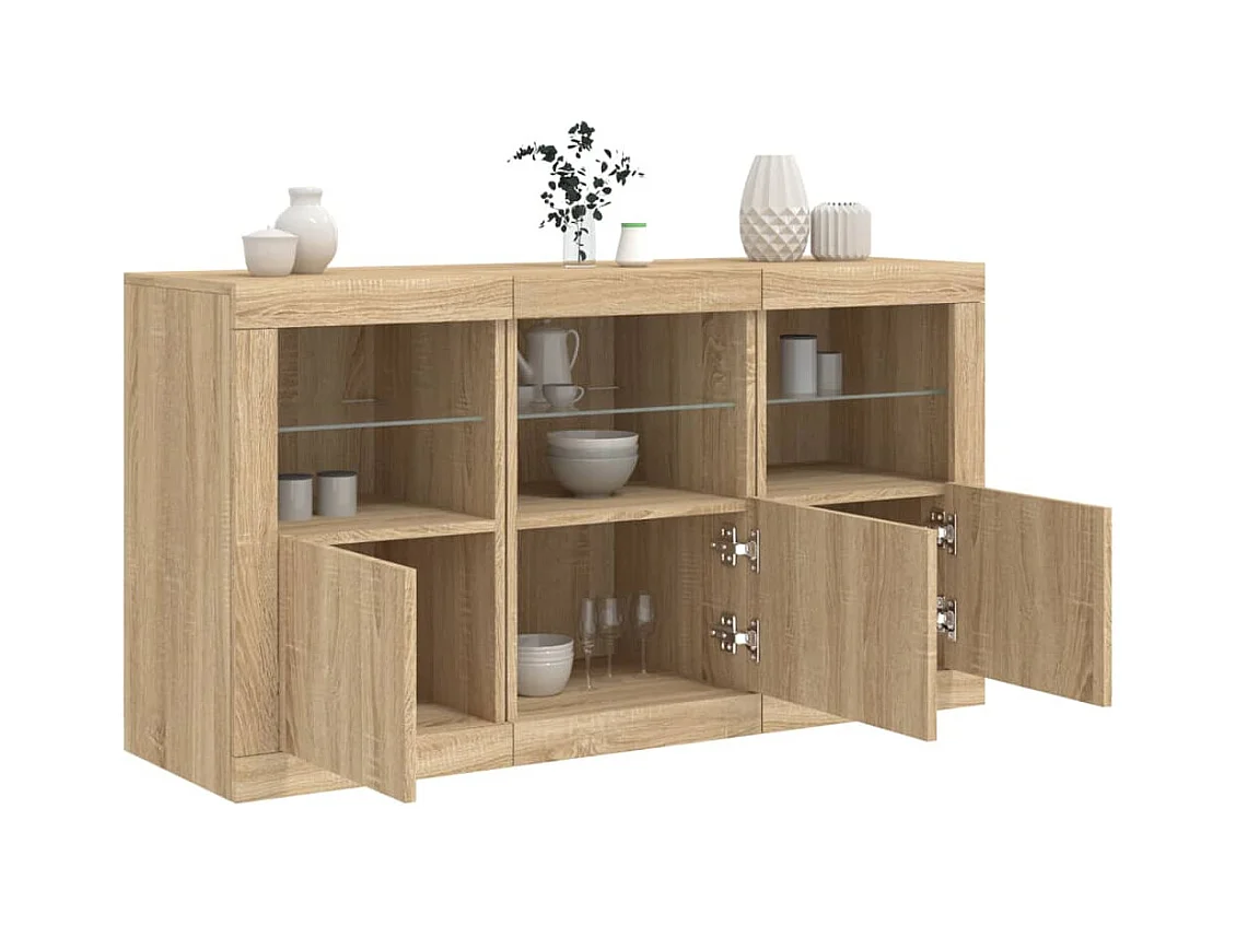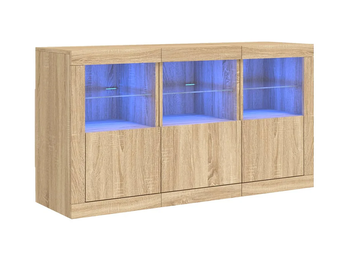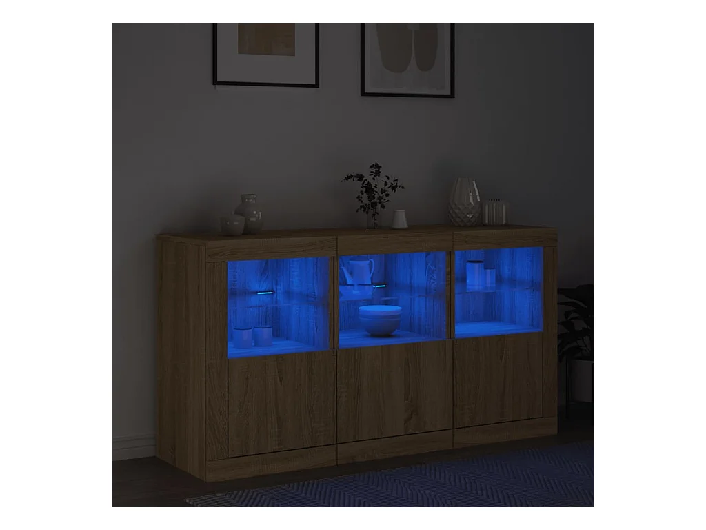 Aparadores c/ LEDs 3 pcs derivados de madeira carvalho sonoma