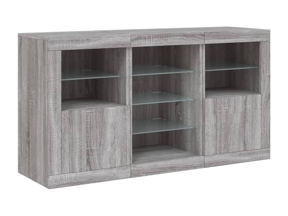 Aparador com luzes LED 123x37x67 cm cinzento sonoma