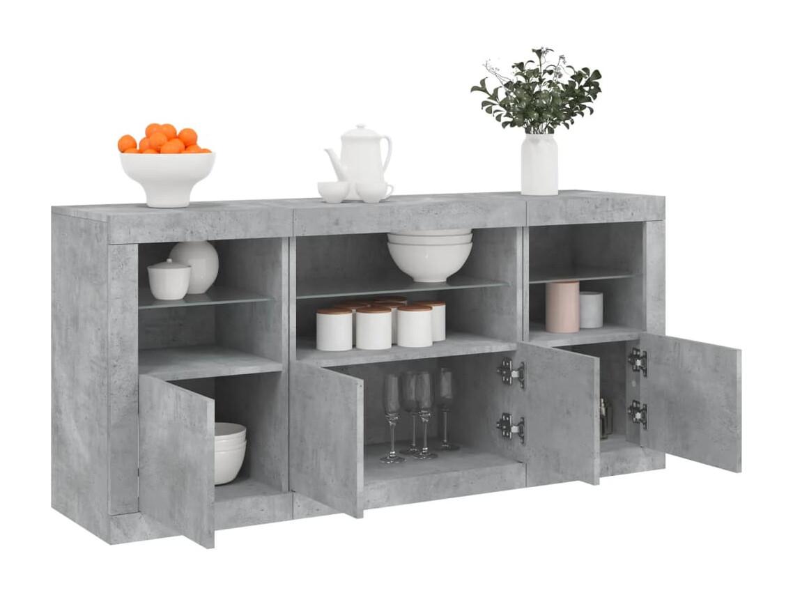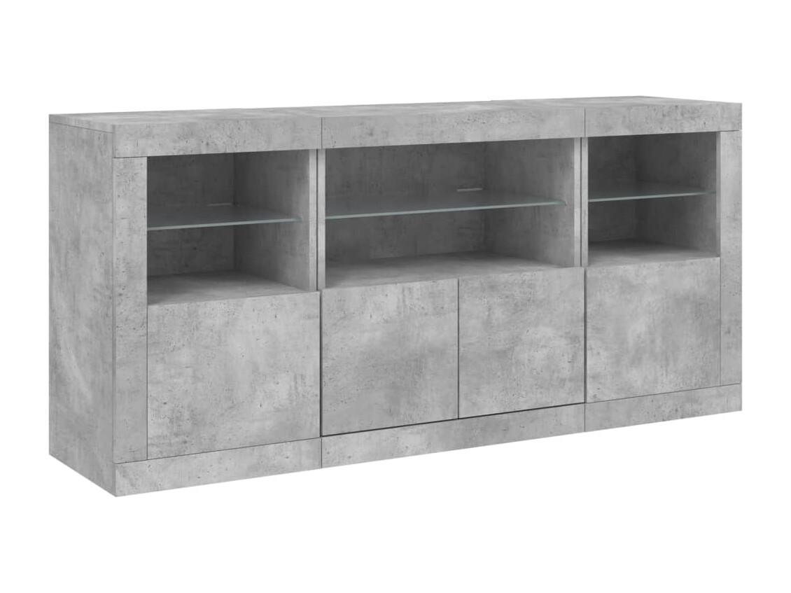 Aparador com luzes LED 142,5x37x67 cm cinzento cimento