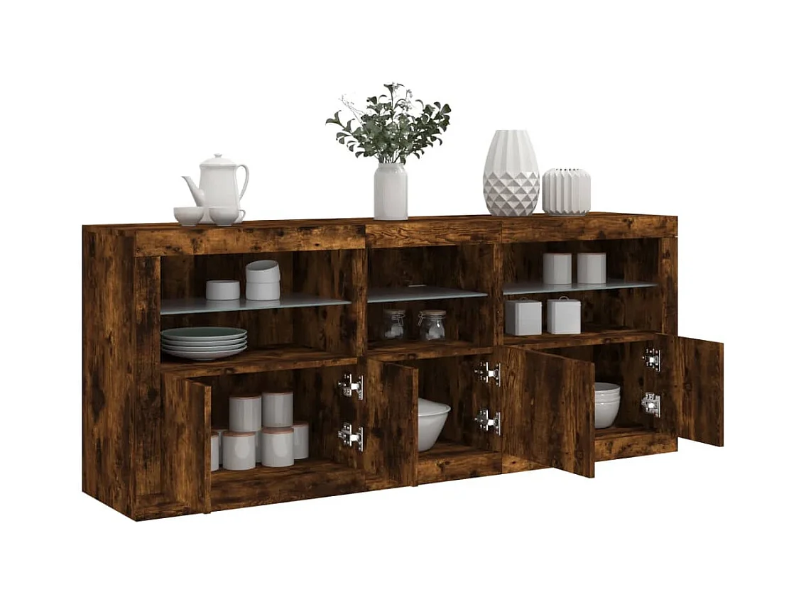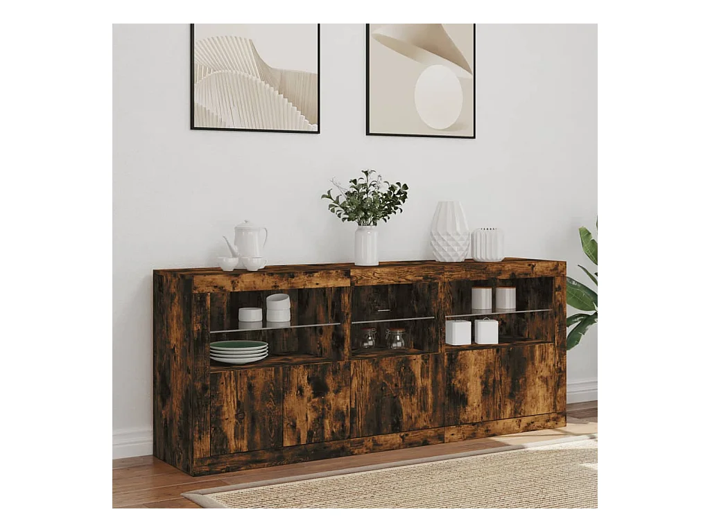 Aparador com luzes LED 162x37x67 cm carvalho fumado