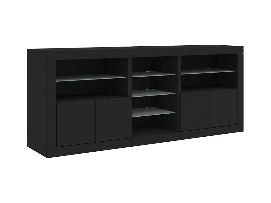 Aparadores c/ luzes LED 3 pcs derivados de madeira preto