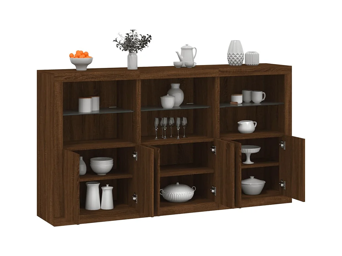 Aparadores c/ LEDs 3 pcs derivados de madeira carvalho sonoma