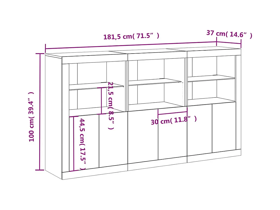Aparador com luzes LED 181,5x37x67 cm carvalho sonoma
