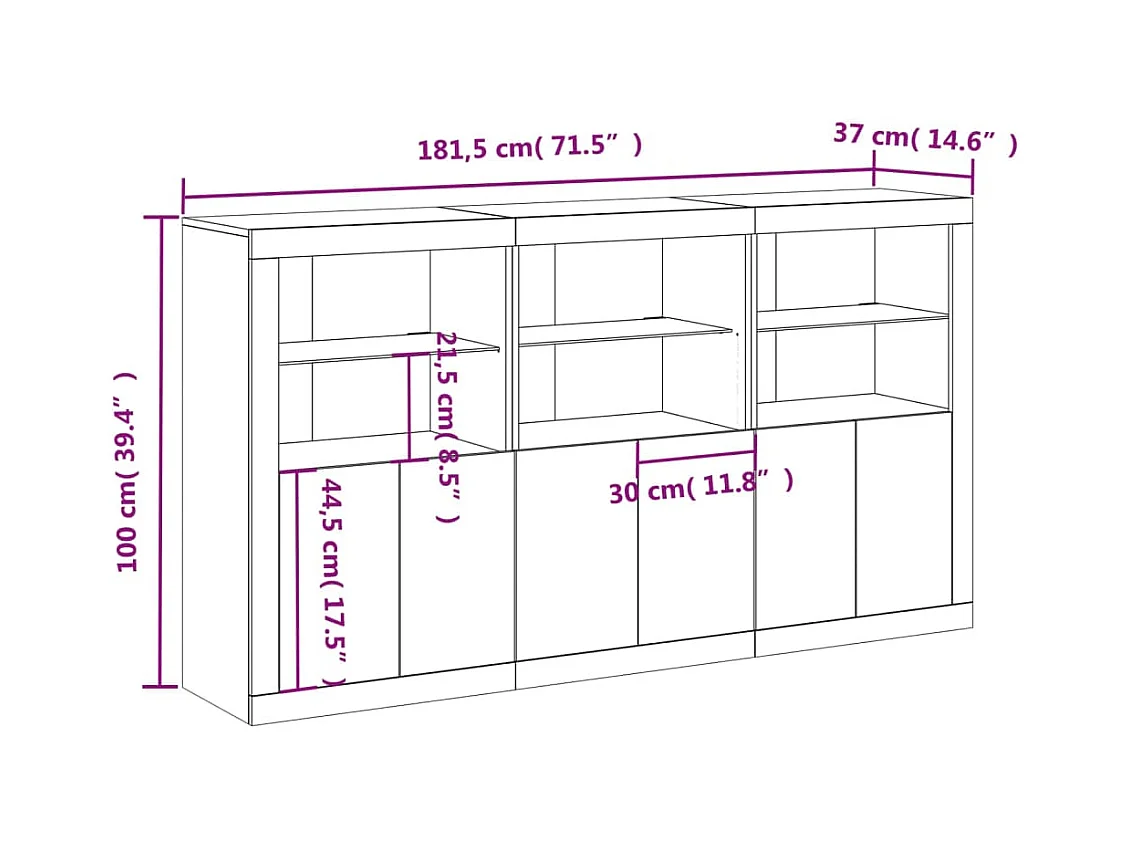 Aparador com luzes LED 181,5x37x100 cm cinzento sonoma