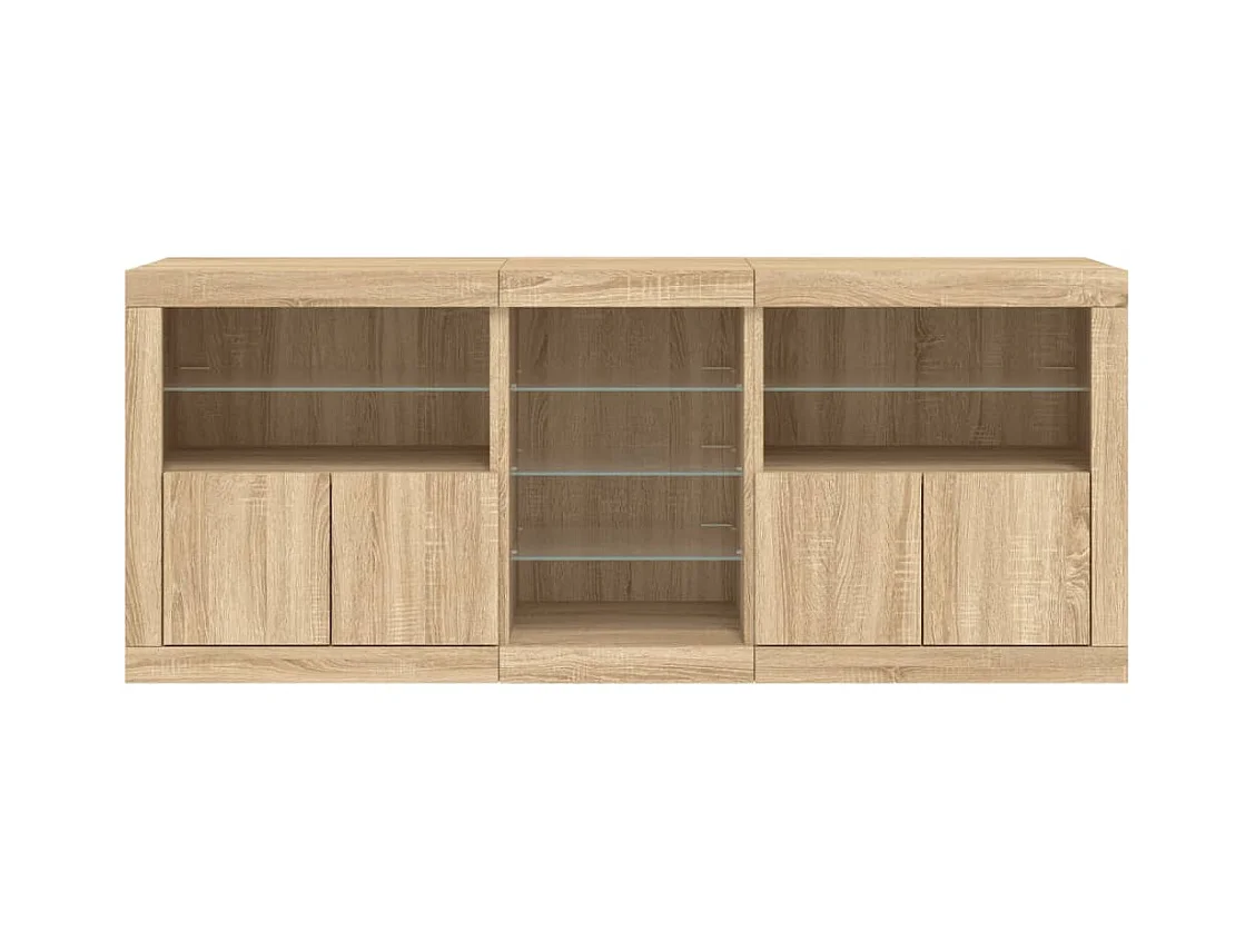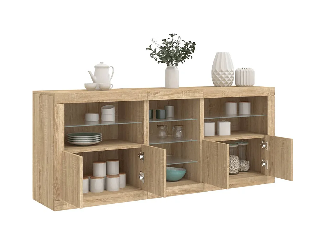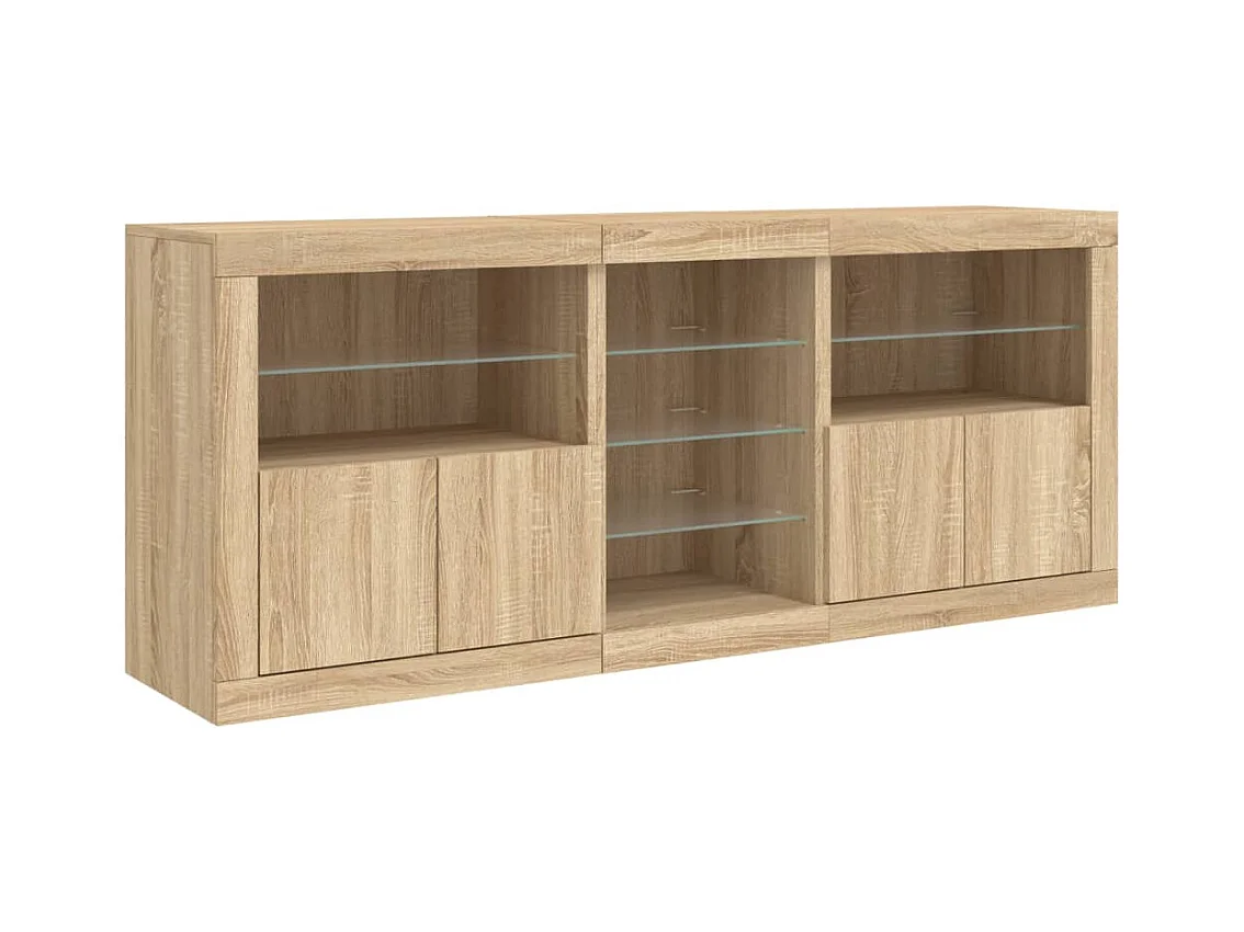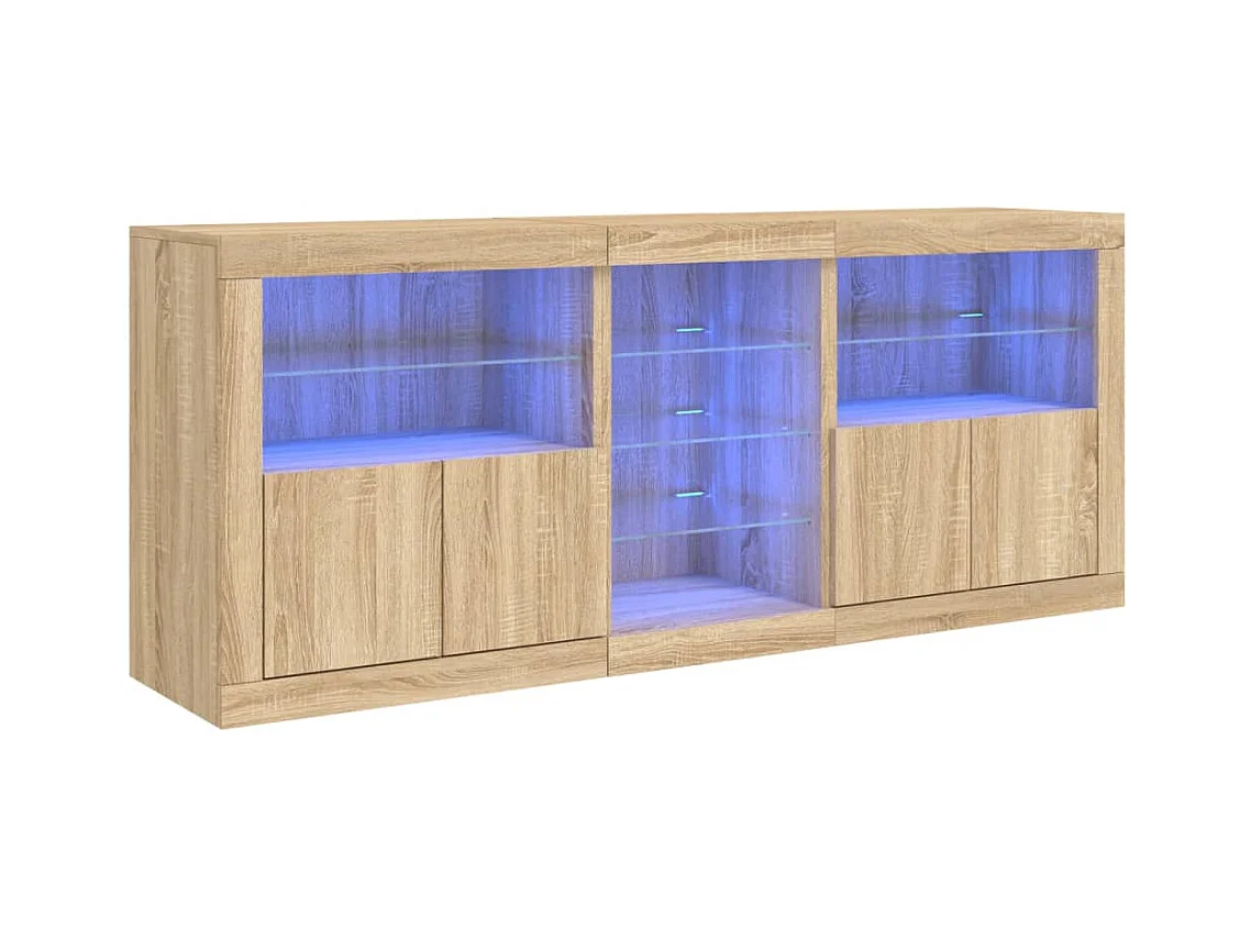Aparadores c/ LEDs 3 pcs derivados de madeira carvalho sonoma