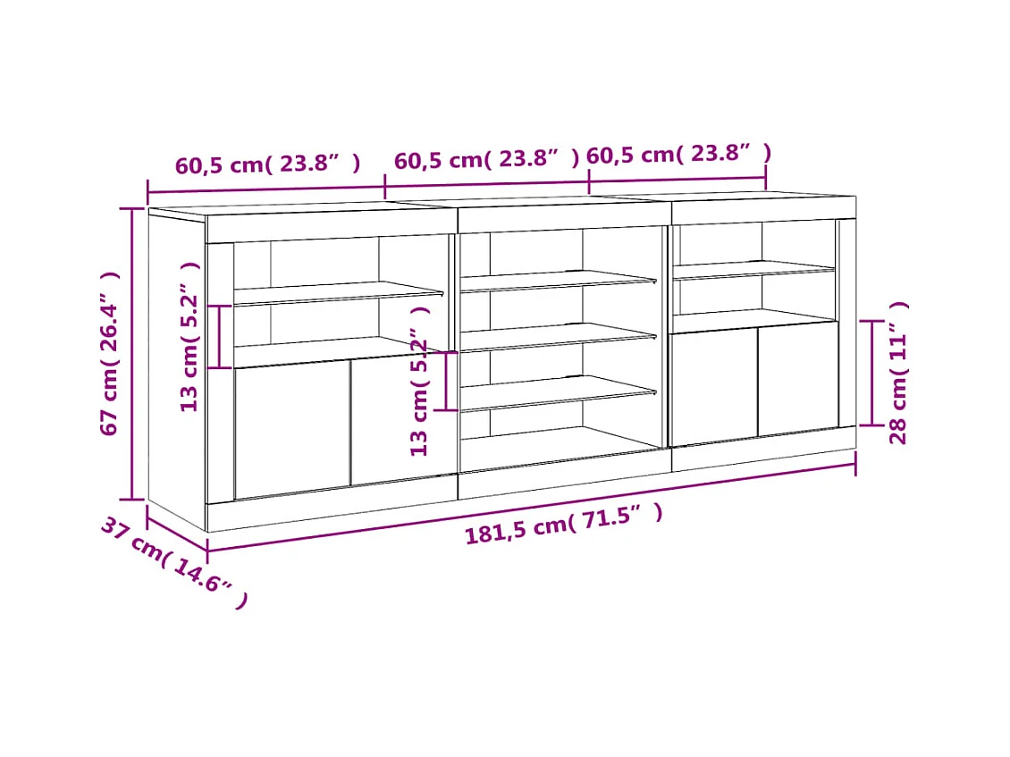 Aparador com luzes LED 181,5x37x67 cm carvalho sonoma