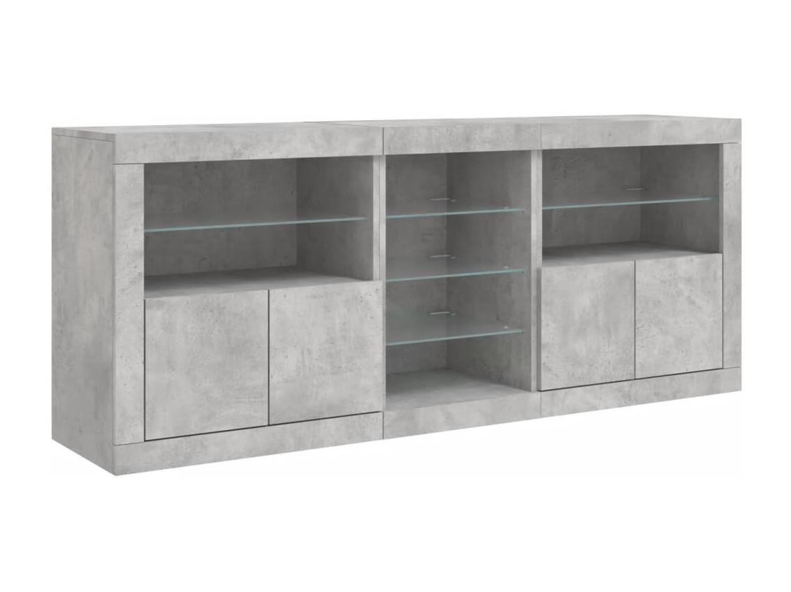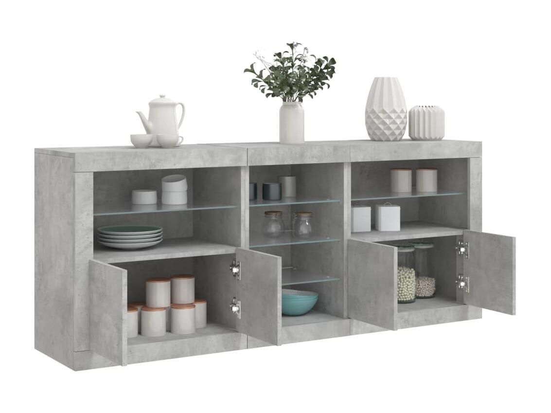 Aparador com luzes LED 181,5x37x67 cm cinzento cimento