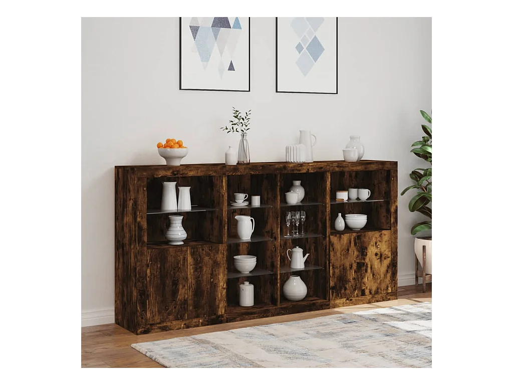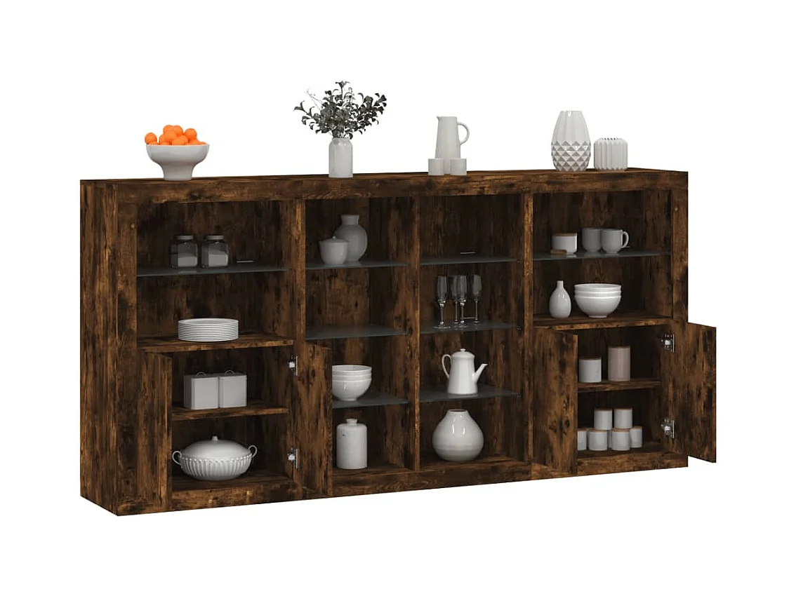 Aparador com luzes LED 162x37x100 cm carvalho fumado PT478960