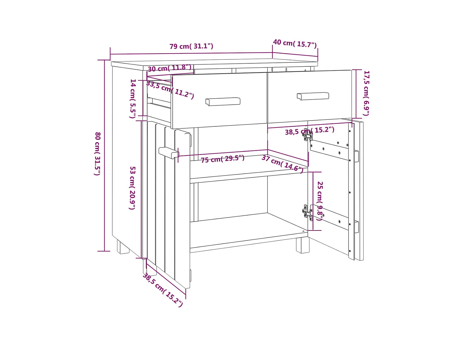 Buffet aparador cômoda armário organizador unidade cozinha sala sala 79 x 40 x 80 cm madeira maciça de pinho marrom 02_0032177