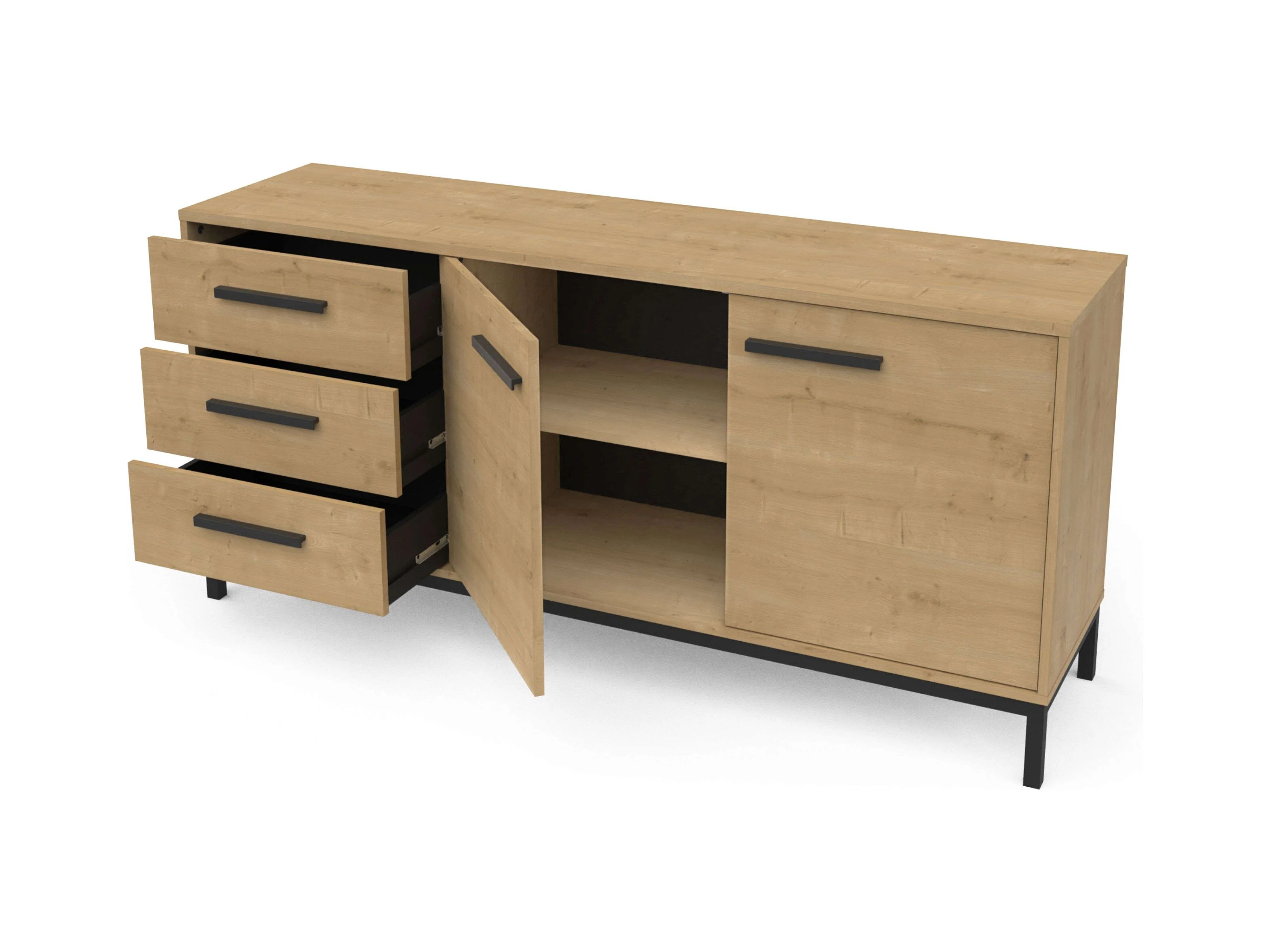 Aparador Craft com 2 portas e 3 gavetas, carvalho e preto, 72x40x153cm