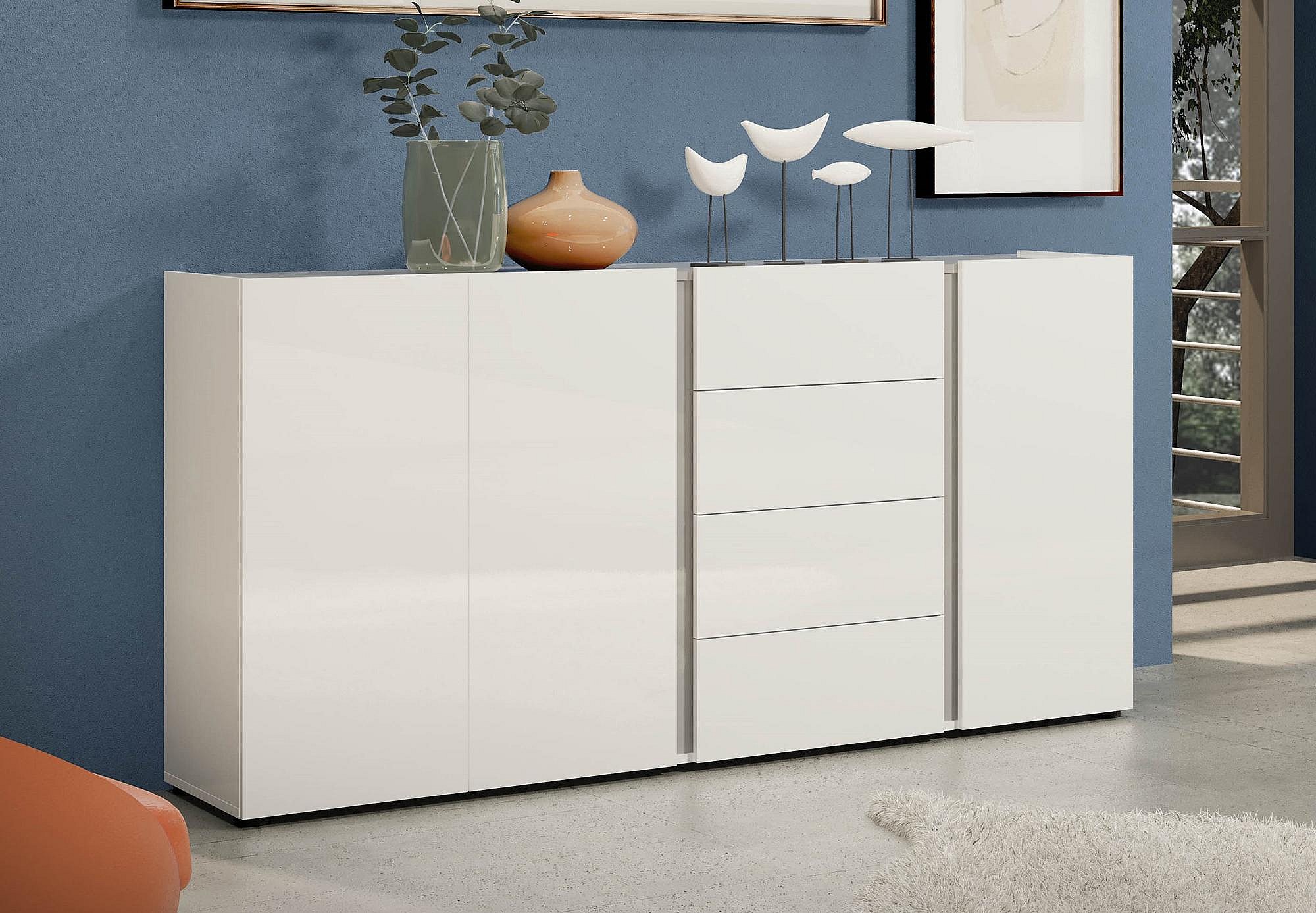 Aparador Dficarell, Buffet de sala de estar, Madia de sala de estar, Despensa de cozinha, Made in Italy, 180x38h79 cm, Branco brilhante
