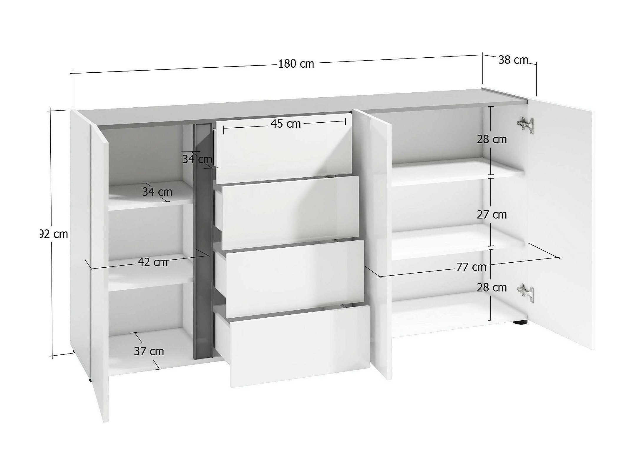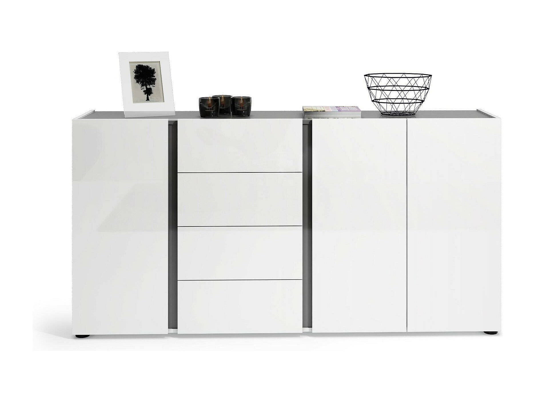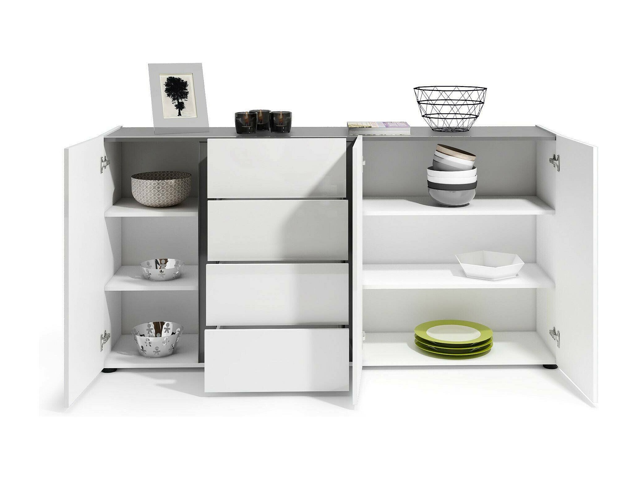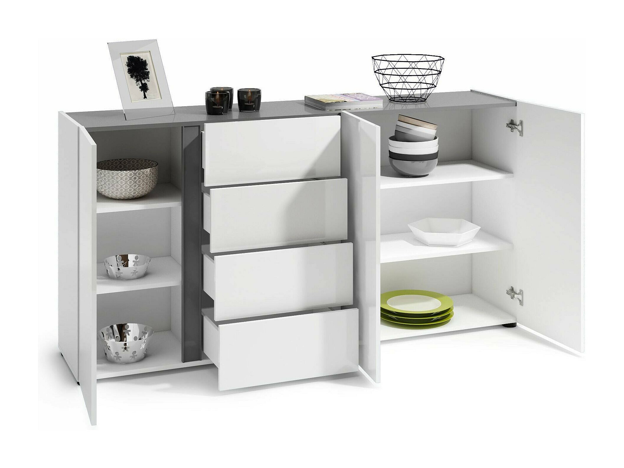 Aparador Dbjarnaso, Buffet de sala, Madia de sala, Despensa de cozinha, Made in Italy, 180x38h92 cm, Branco brilhante e Antracite