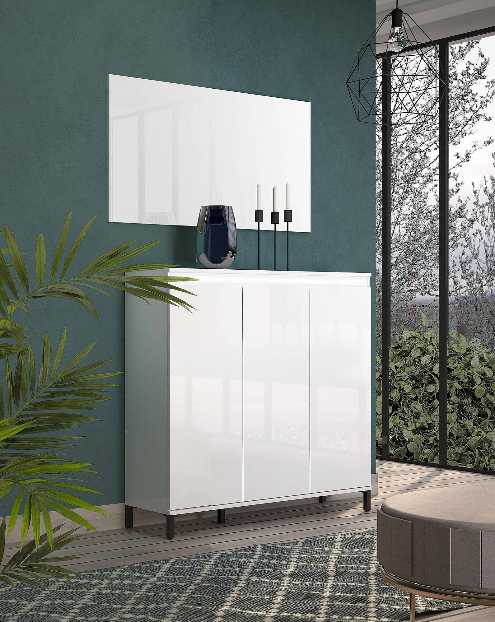 Credenza Ddariv, BuffE para sala de estar com 3 portas, sala de estar, aparador moderno, 100% Made in Italy, 200x40h80 cm, Branco brilhante