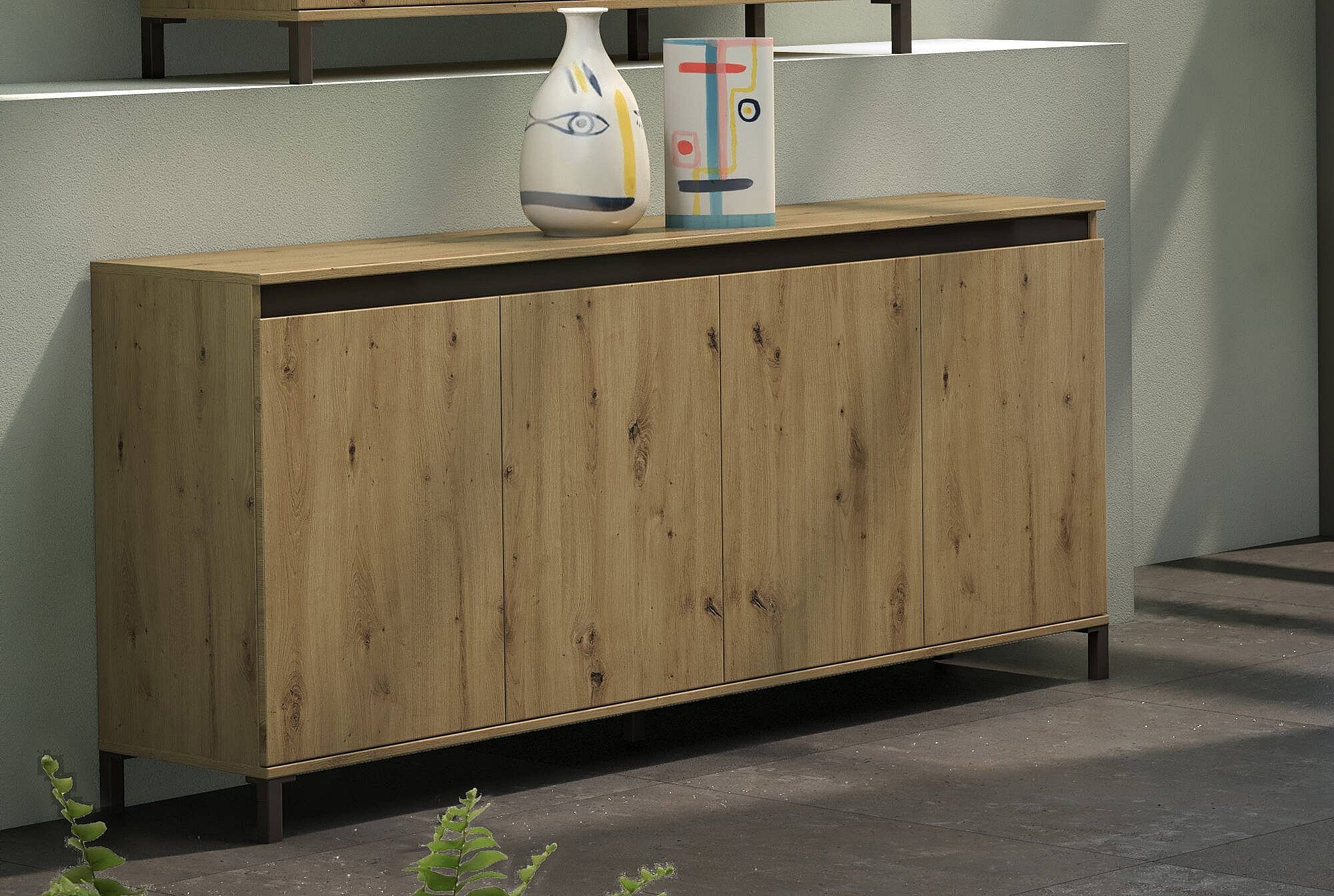 Aparador Dpenz, Buffet de sala de estar, Madia de sala de estar, Despensa de cozinha, 142x36h83 cm, Carvalho