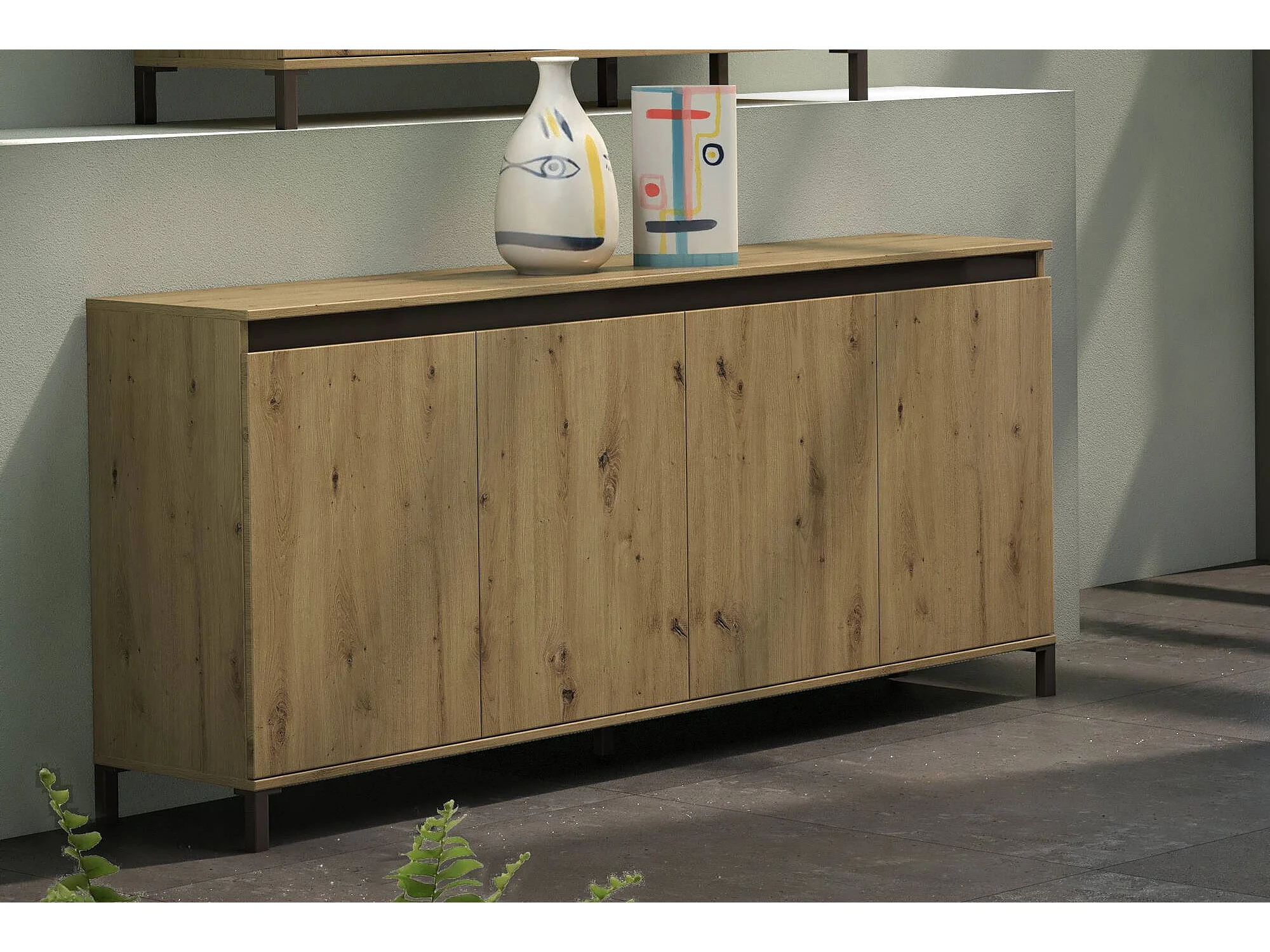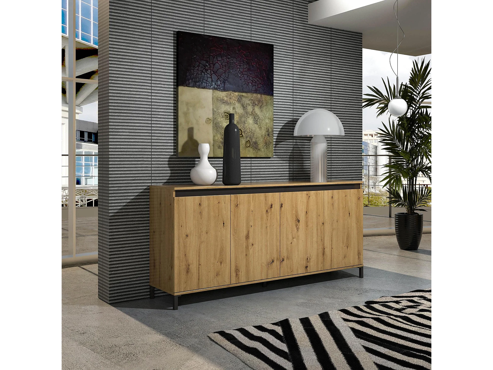 Aparador Dcerofolin, Buffet de sala de estar, Madia de sala de estar, DIspensa de cozinha, Made in Italy, 184x90h40 cm, Branco brilhante e Antracite
