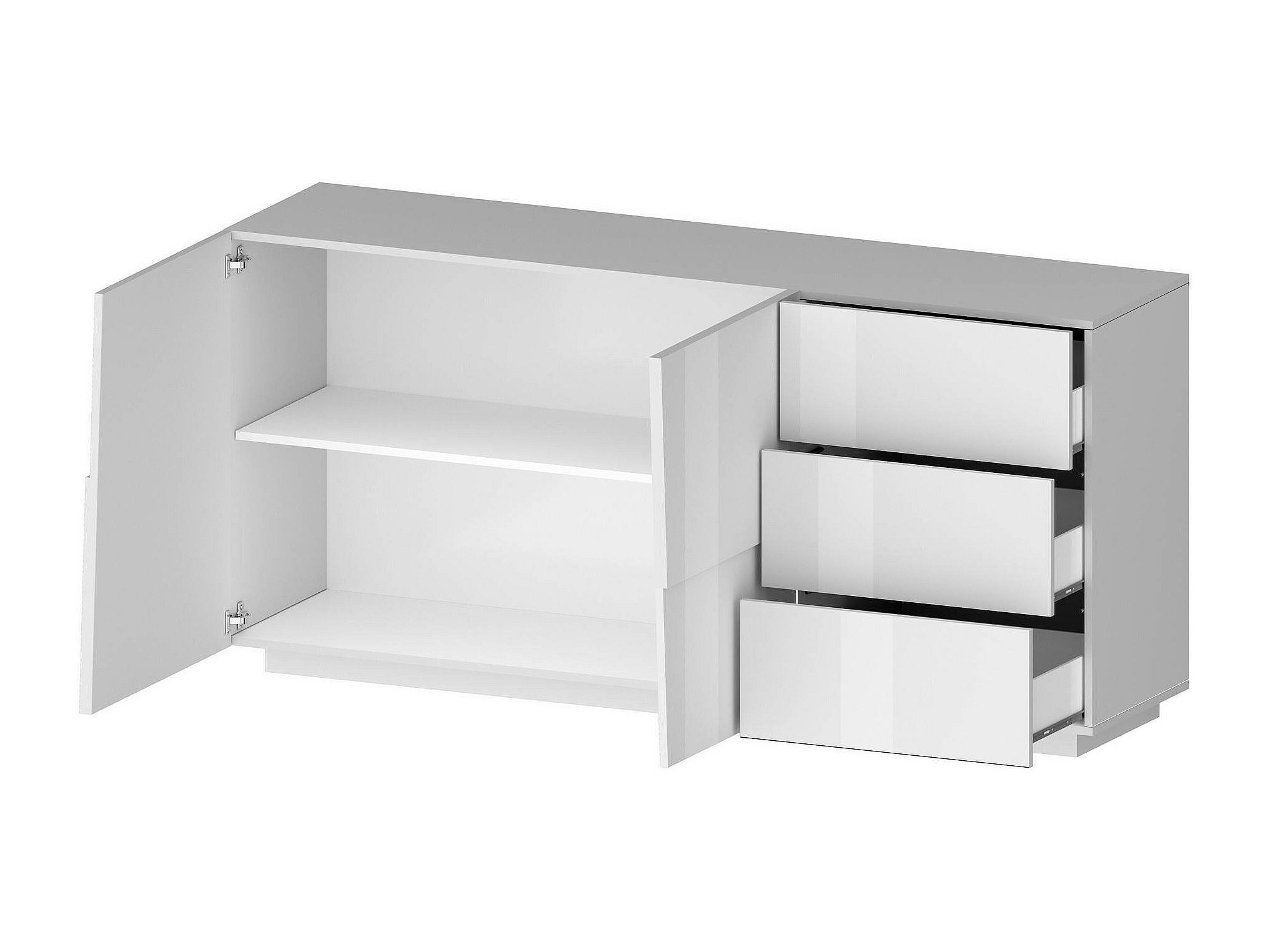 Aparador Ddalessi, Buffet de sala, Madeira de sala com 2 portas e 3 gavetas, 180x44h86 cm, Branco brilhante