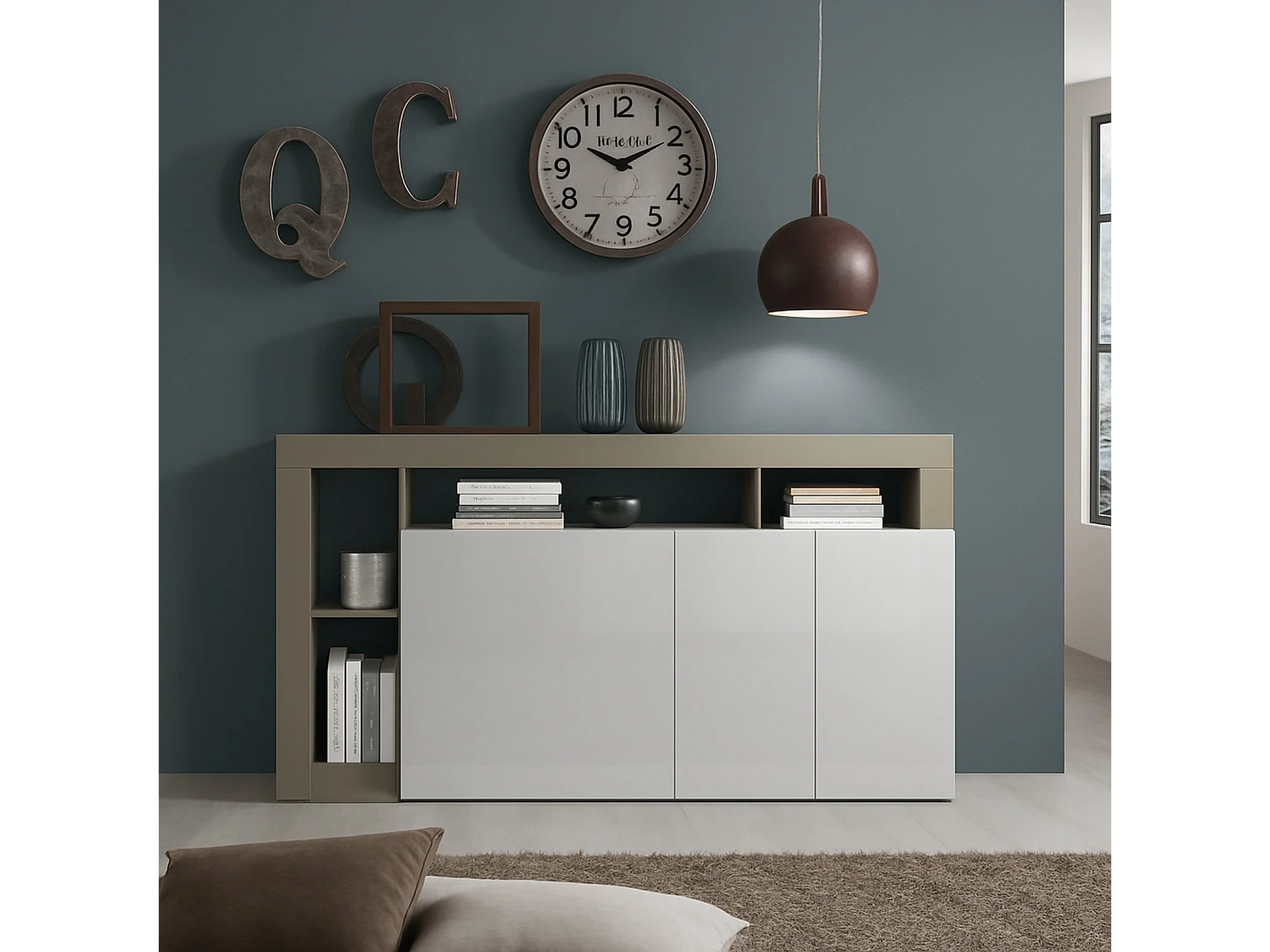 Aparador Ddistefan, Buffet de sala, Aparador de sala, Despensa de cozinha, Fabricado em Itália, 146x42 h93 cm, Branco