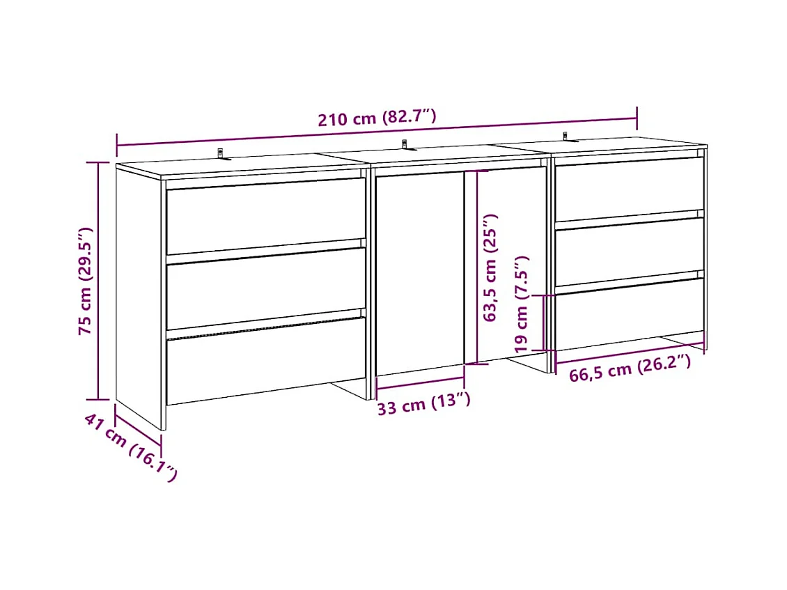 Aparador de 3 peças madeira de carvalho artesanal