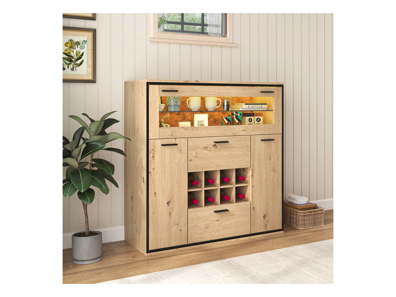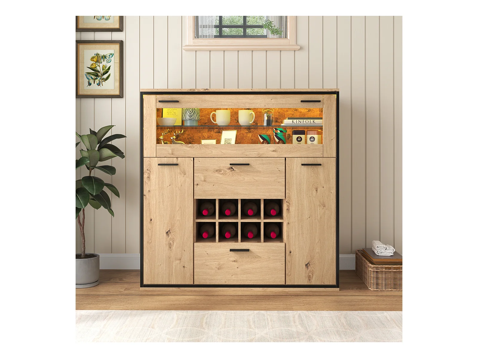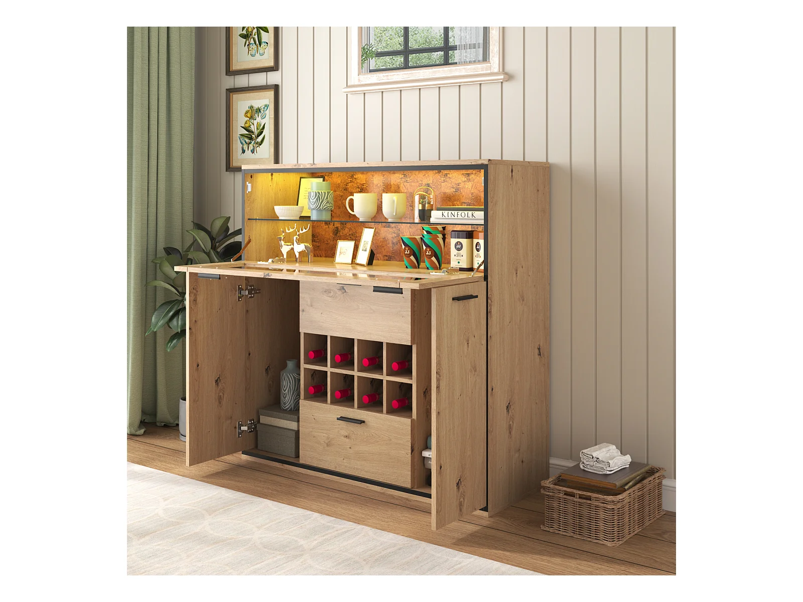 Aparador de arrumação, elegante armário de vinho com portas duplas, prateleira de vidro e suporte para vinho - arrumação perfeita