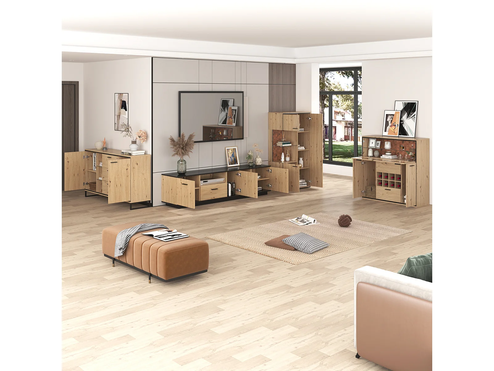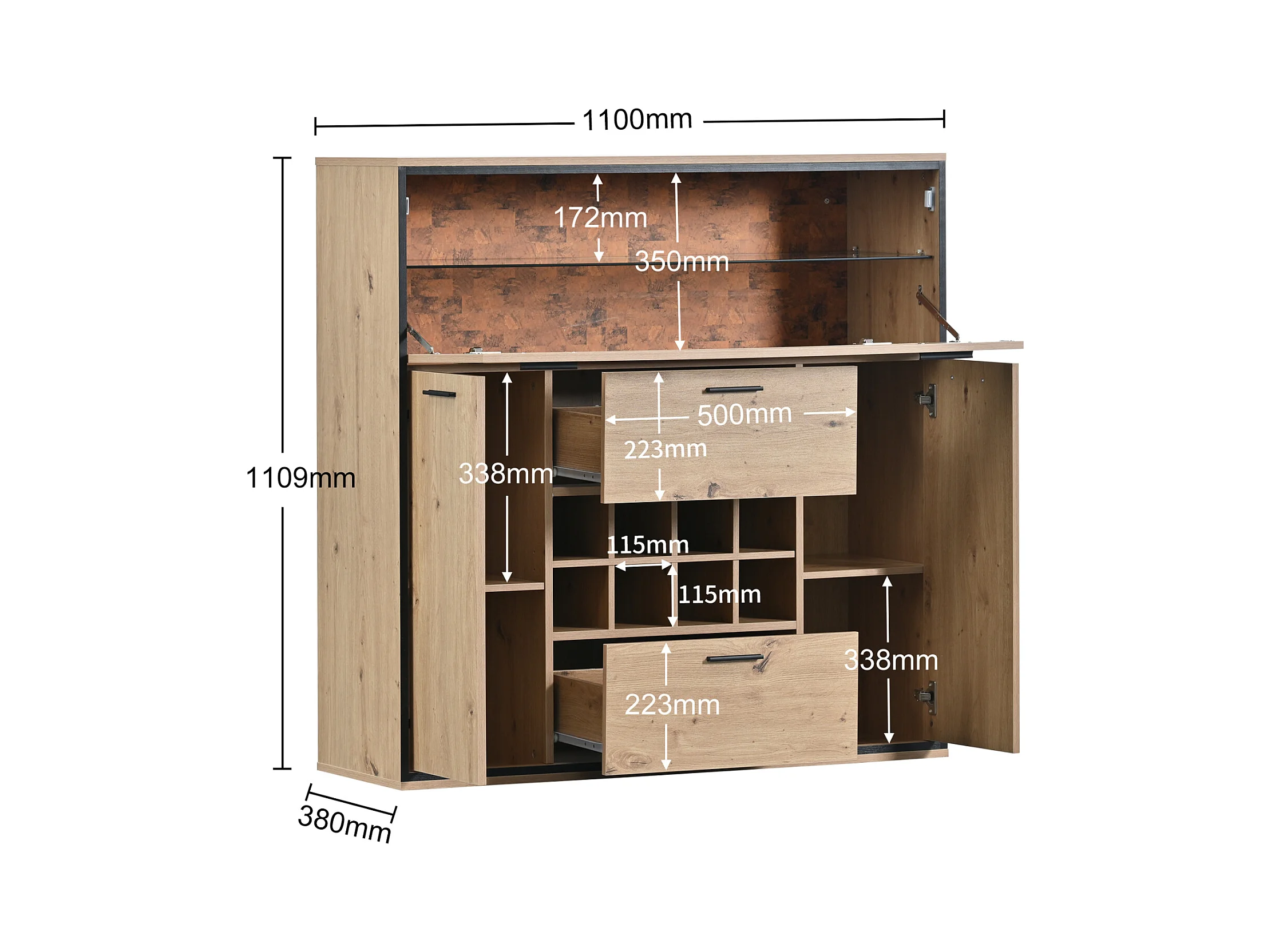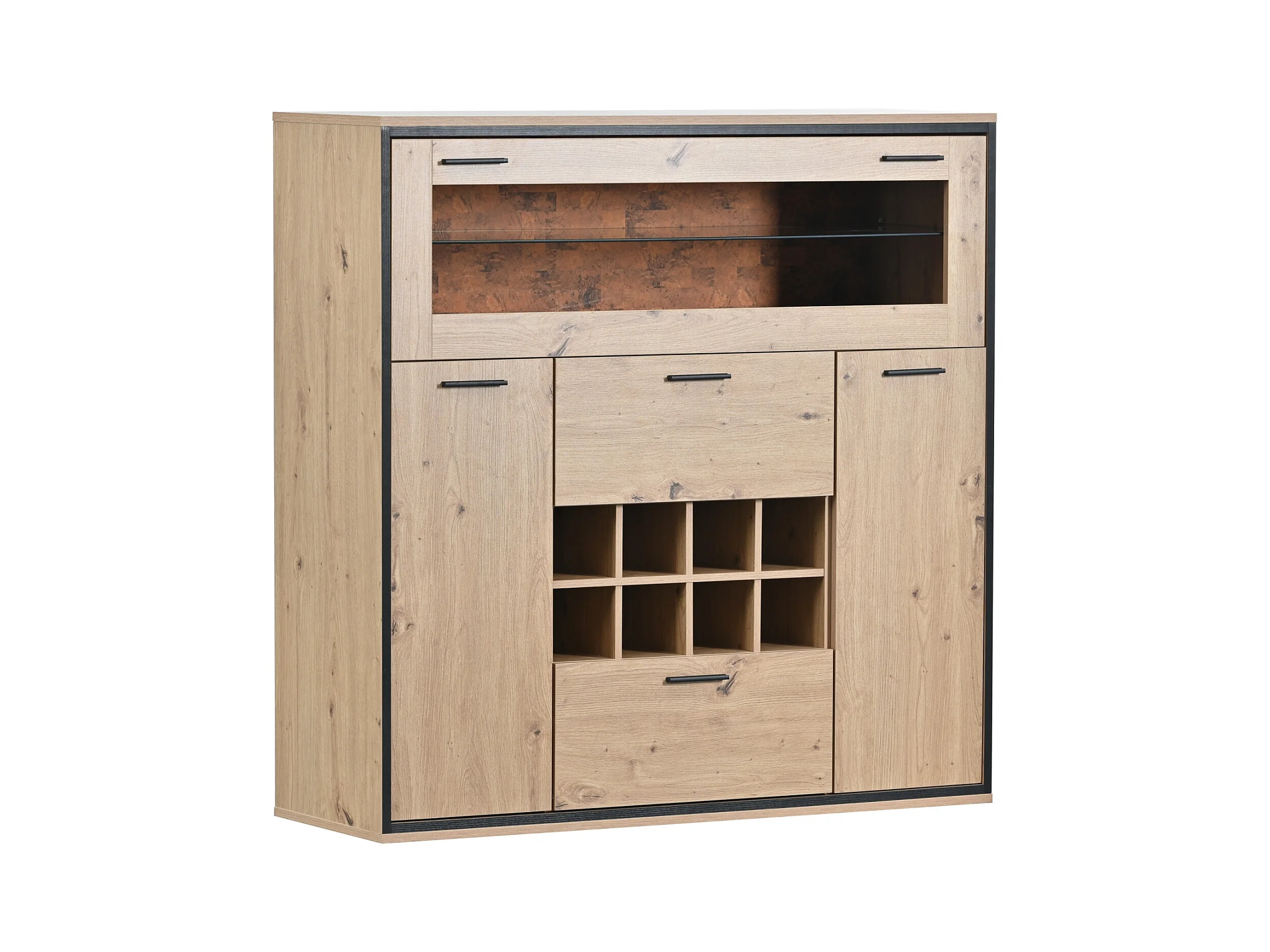 Aparador de arrumação, elegante armário de vinho com portas duplas, prateleira de vidro e suporte para vinho - arrumação perfeita