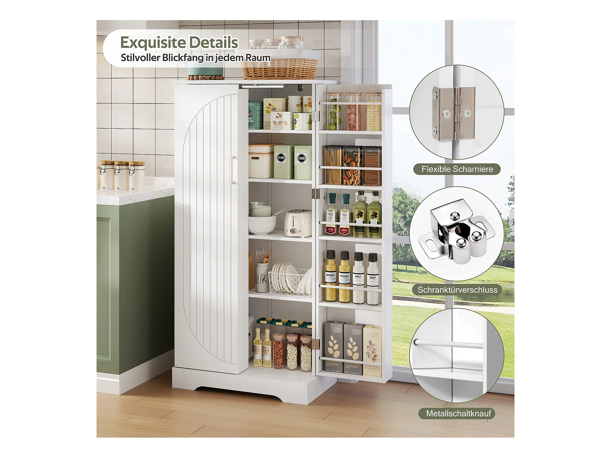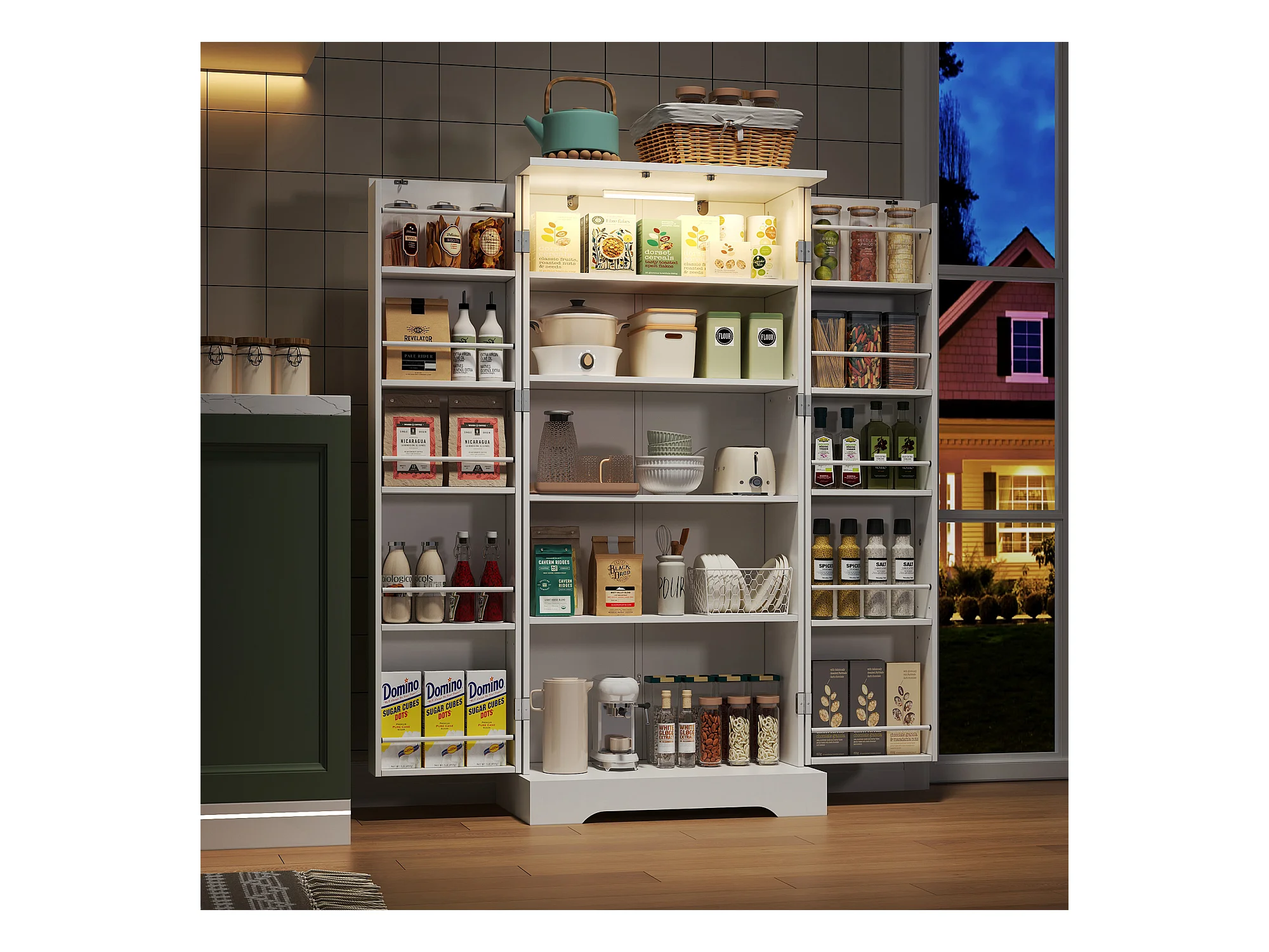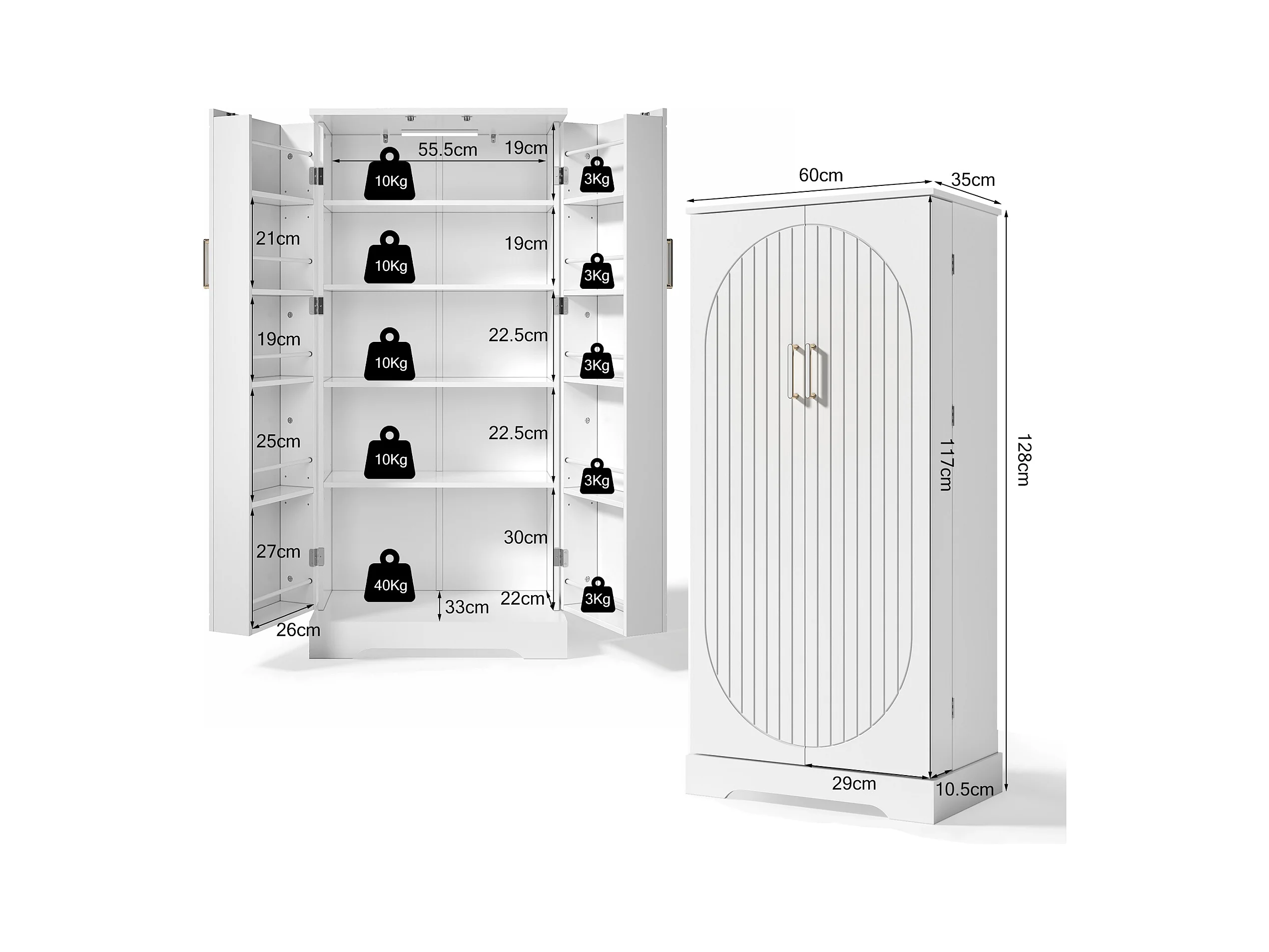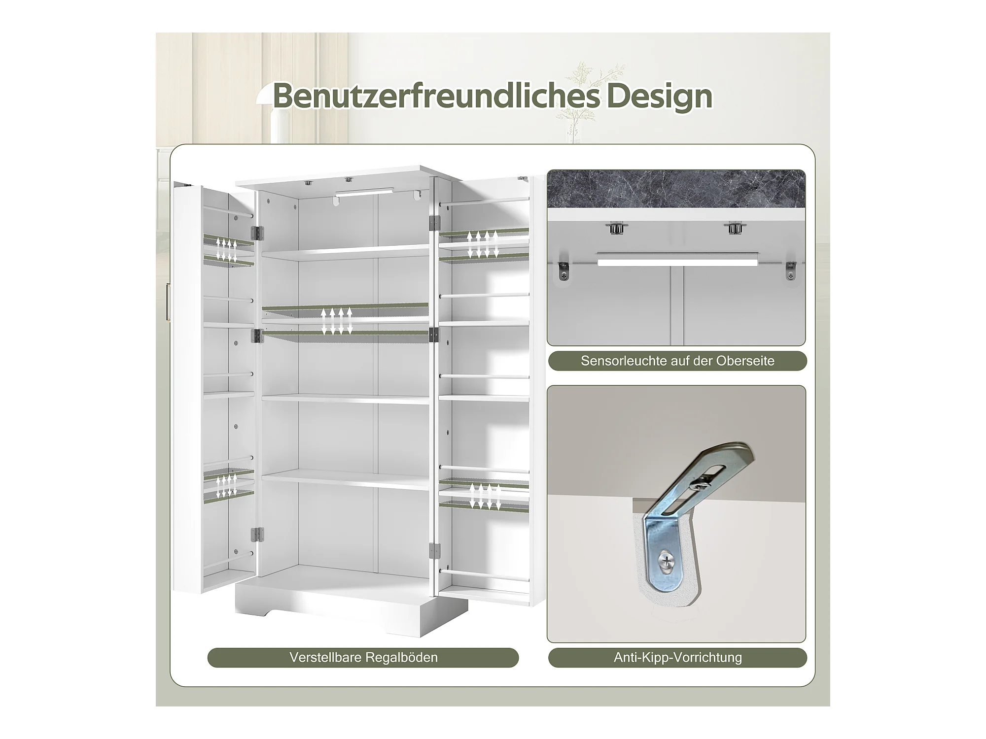 Aparador de cozinha - 60 x 35 x 128 cm - com LEDs + prateleiras reguláveis + 2 portas com arrumação - MDF - branco