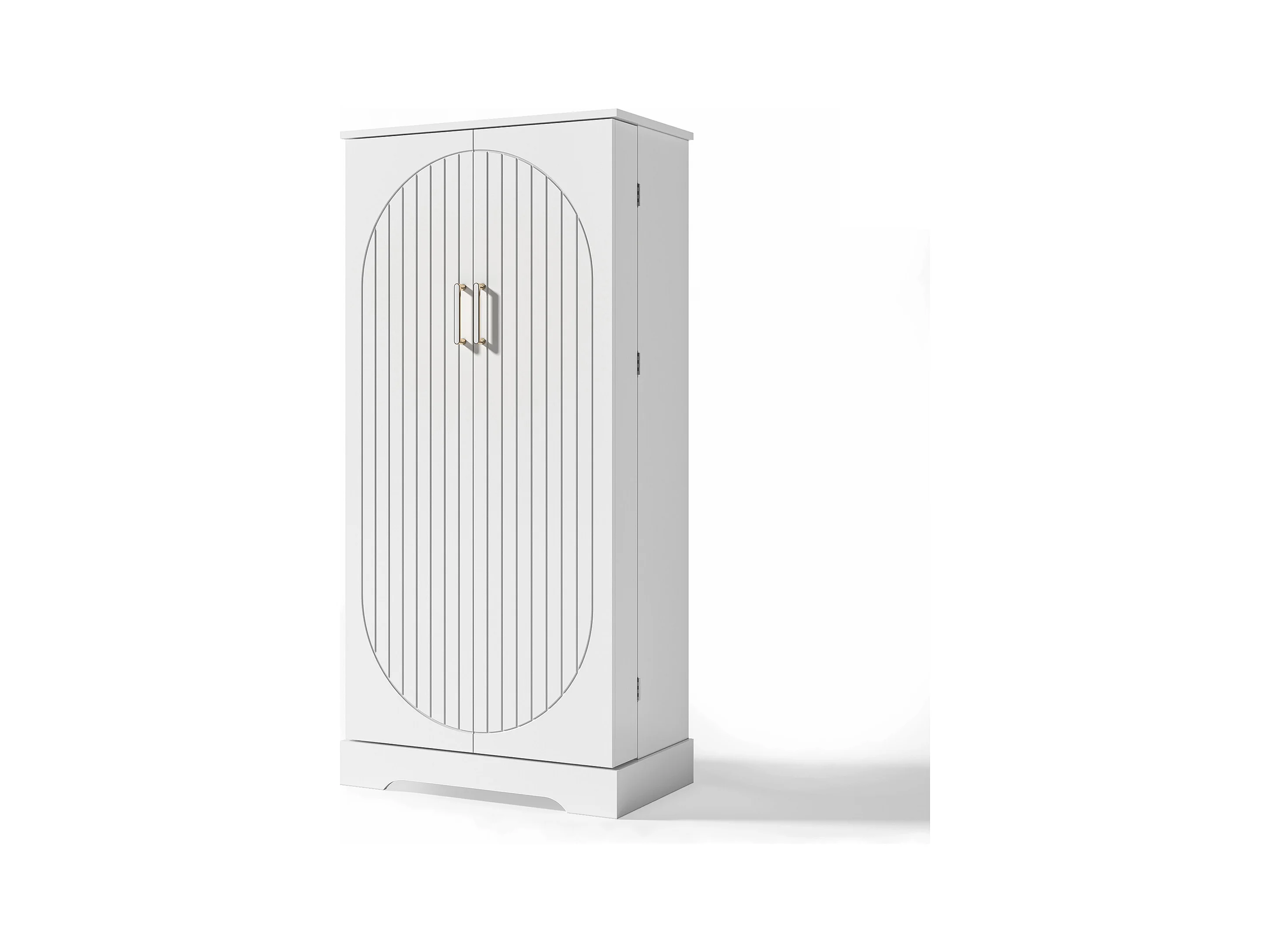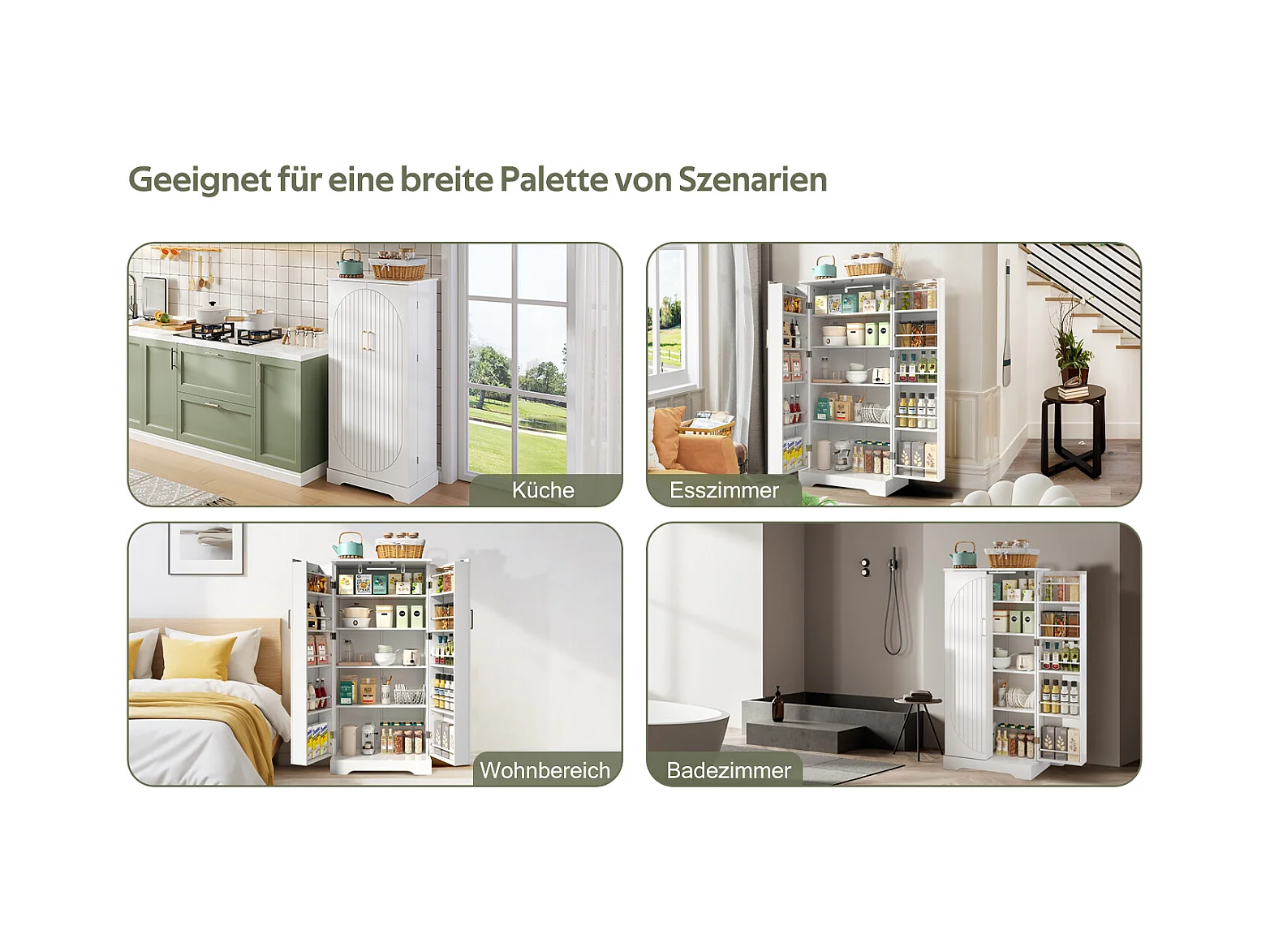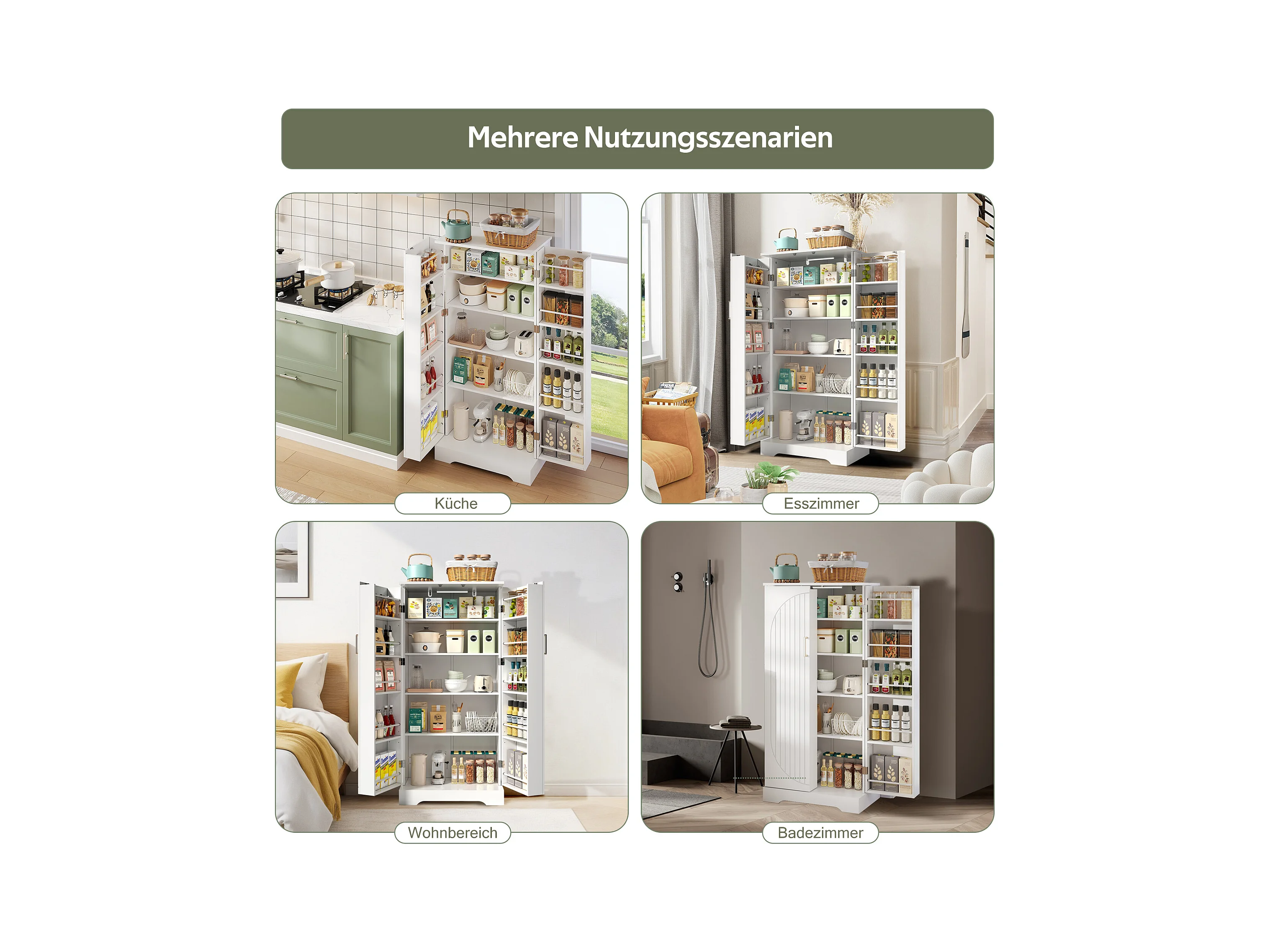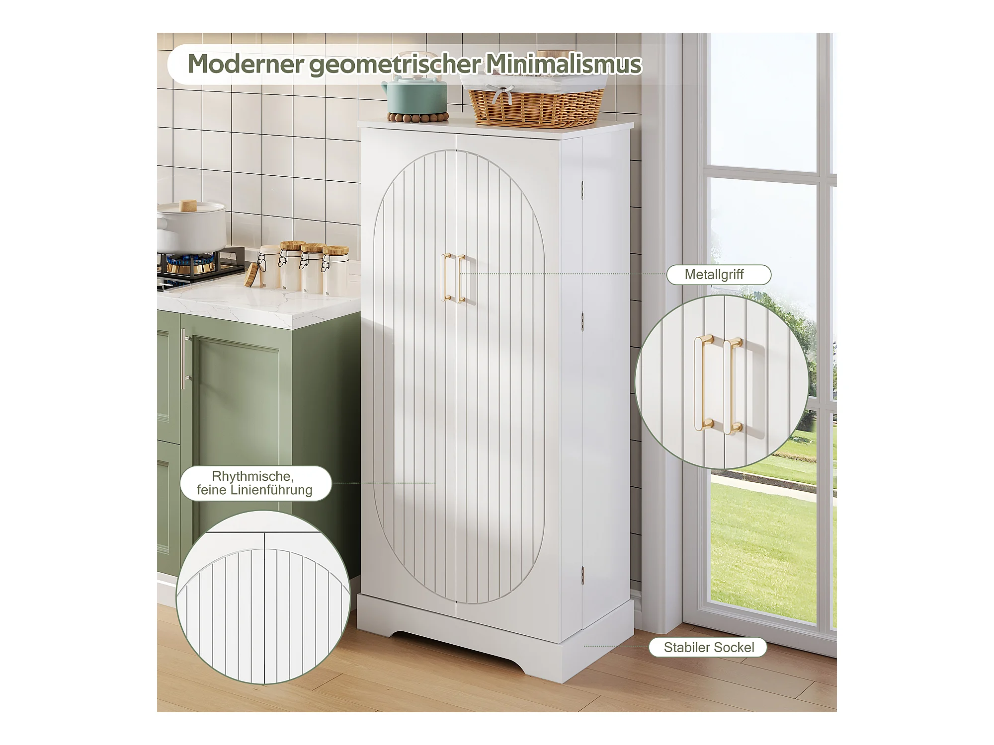 Aparador de cozinha - 60 x 35 x 128 cm - com LEDs + prateleiras reguláveis + 2 portas com arrumação - MDF - branco