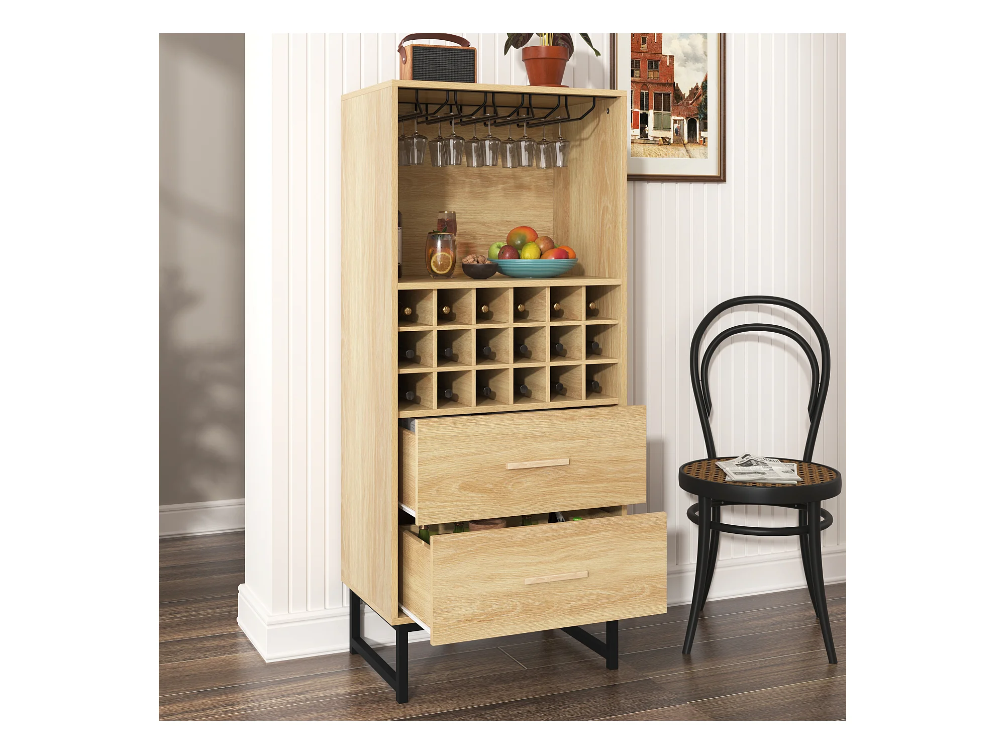Aparador de cozinha com suporte para 18 garrafas de vinho e 2 gavetas - 60 x 39,5 x 141 cm - Aglomerado - Cor madeira