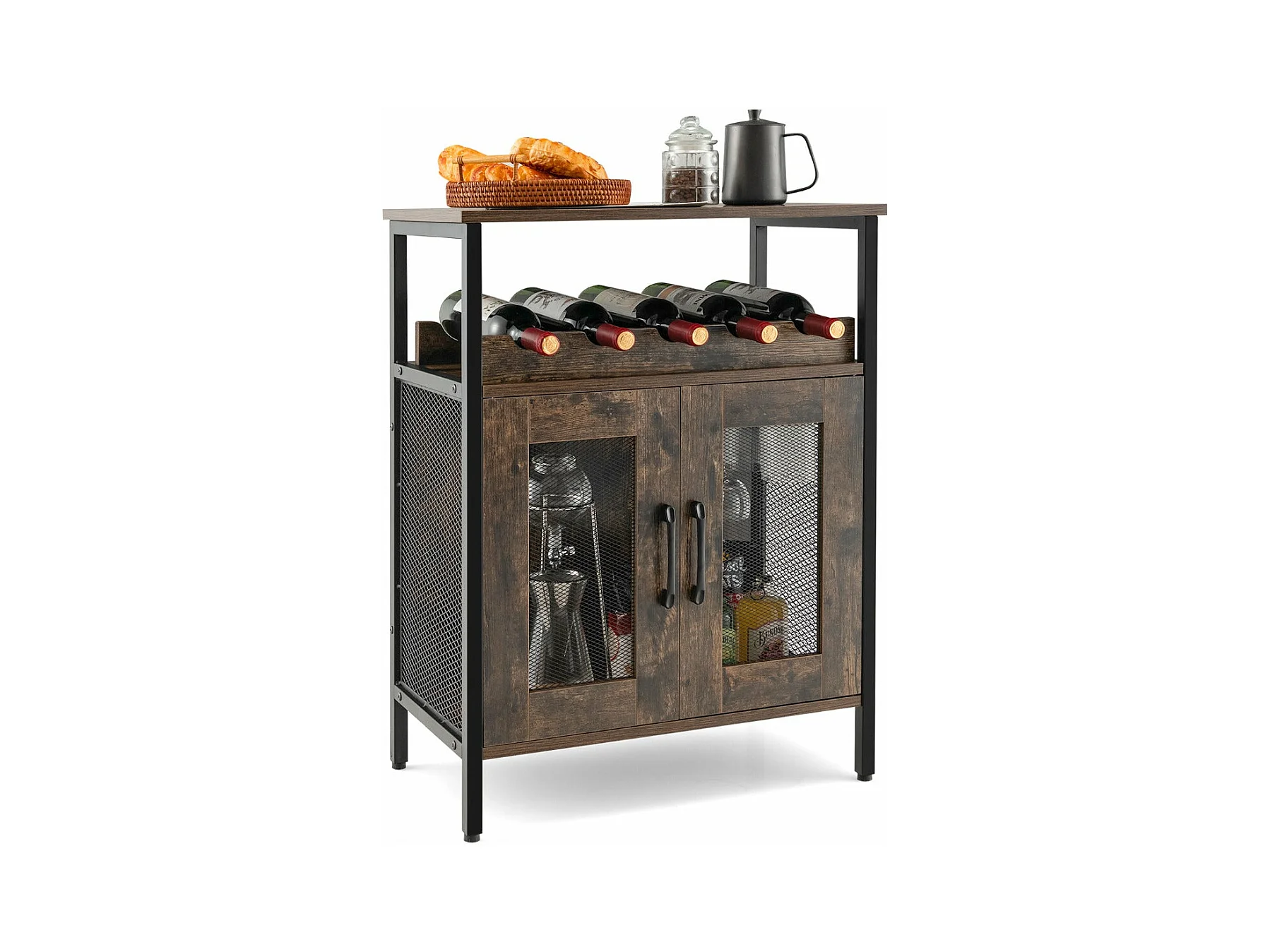 Aparador de cozinha industrial com 2 portas de treliça 60 x 34 x 79 cm para sala de estar sala de jantar cozinha rústico marrom 20_0005629