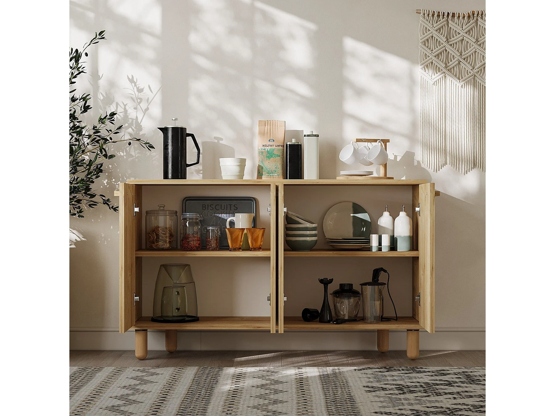 Aparador 2 portas 4 gavetas Ilyes madeira e cinzento 98cm