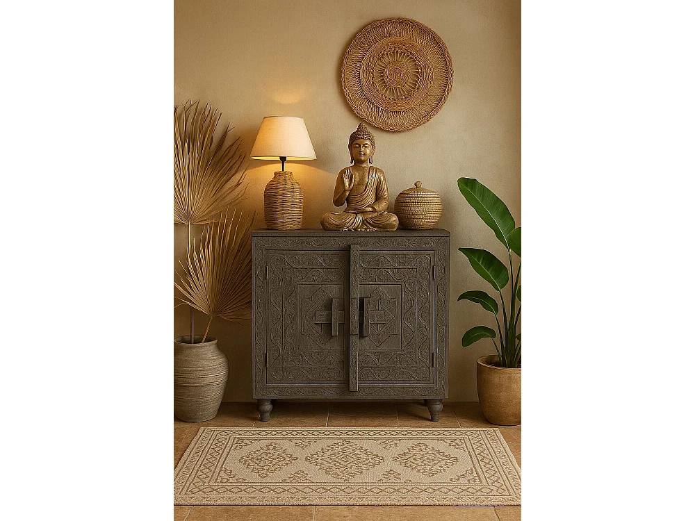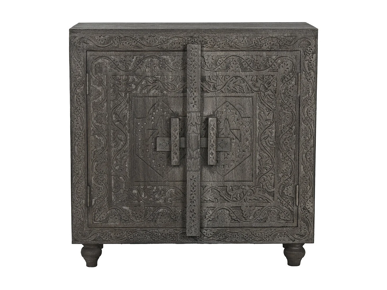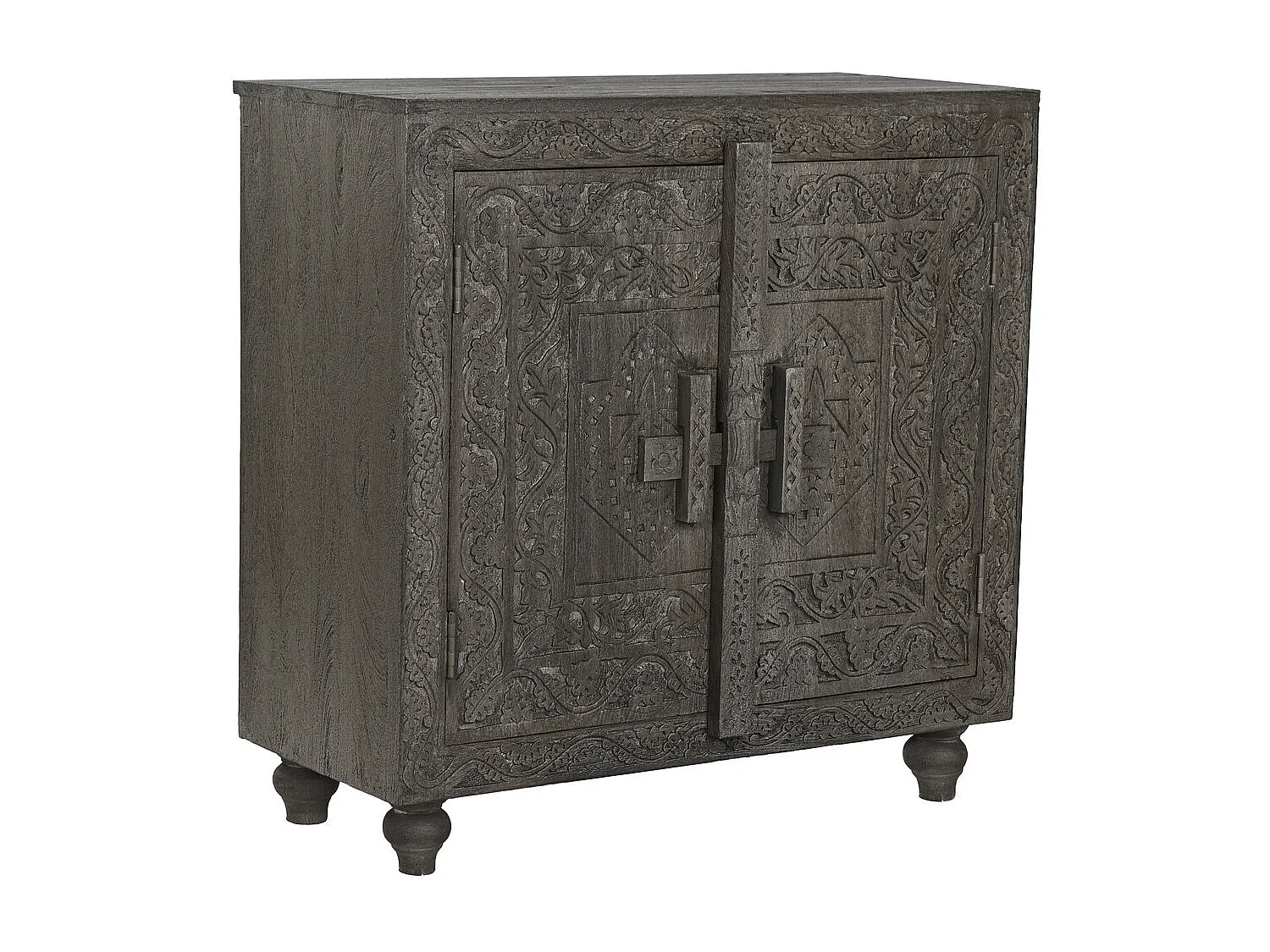 Aparador de madeira 91,5 x 40 x 90 cm, entalhado, cinza