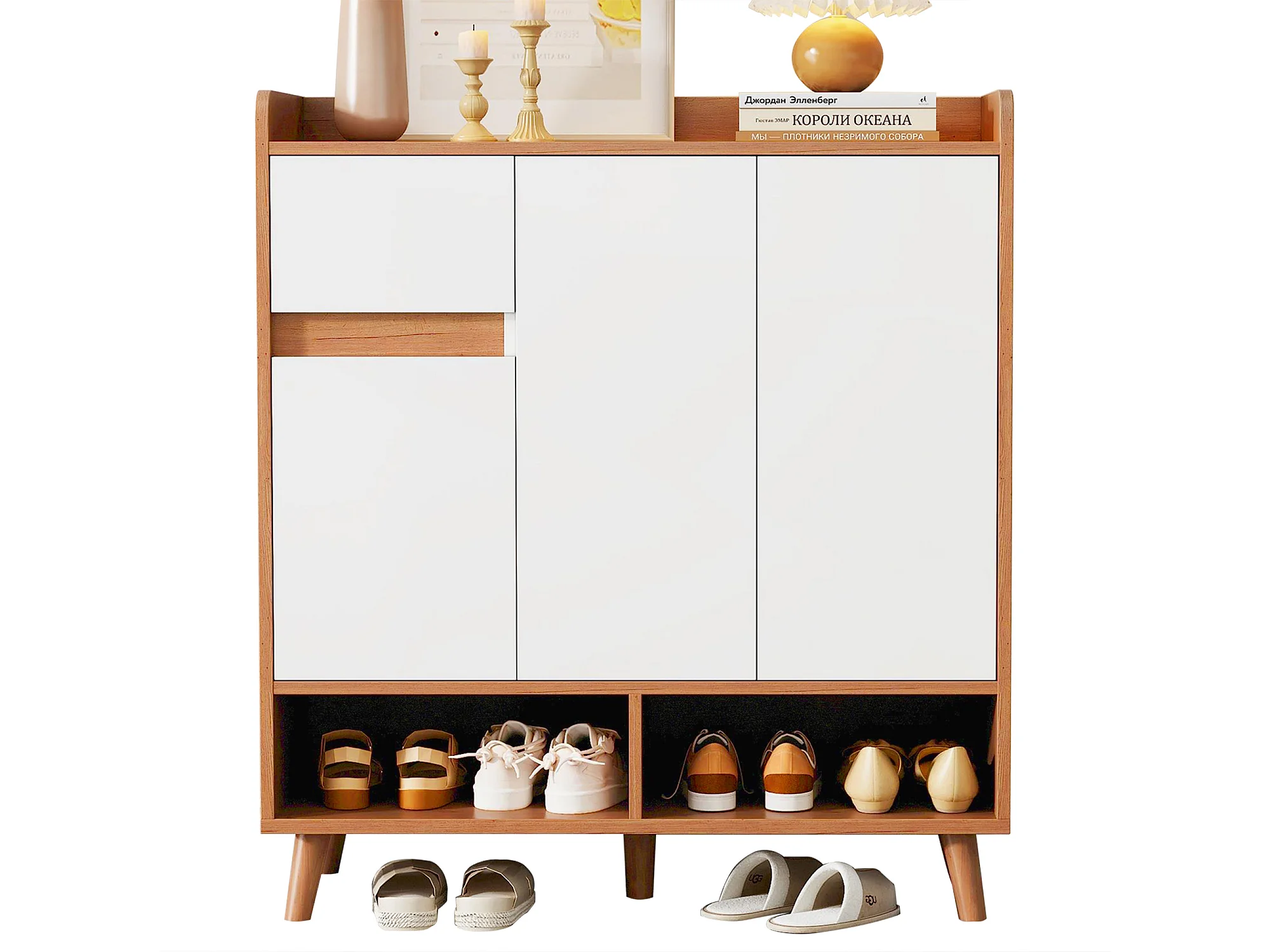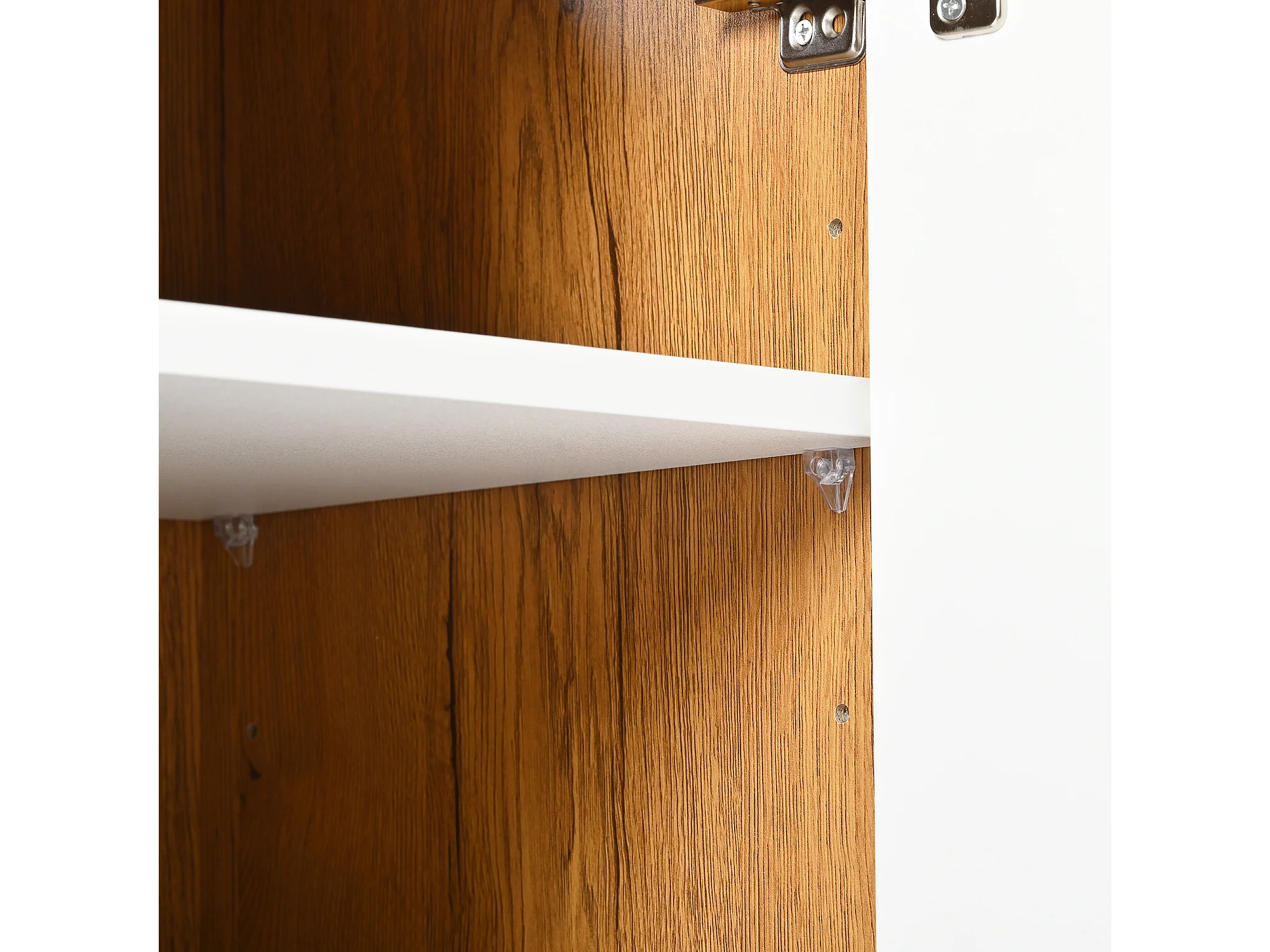 Aparador de madeira branca natural 90x35x99cm com prateleiras ajustáveis para hall de entrada e sala de estar