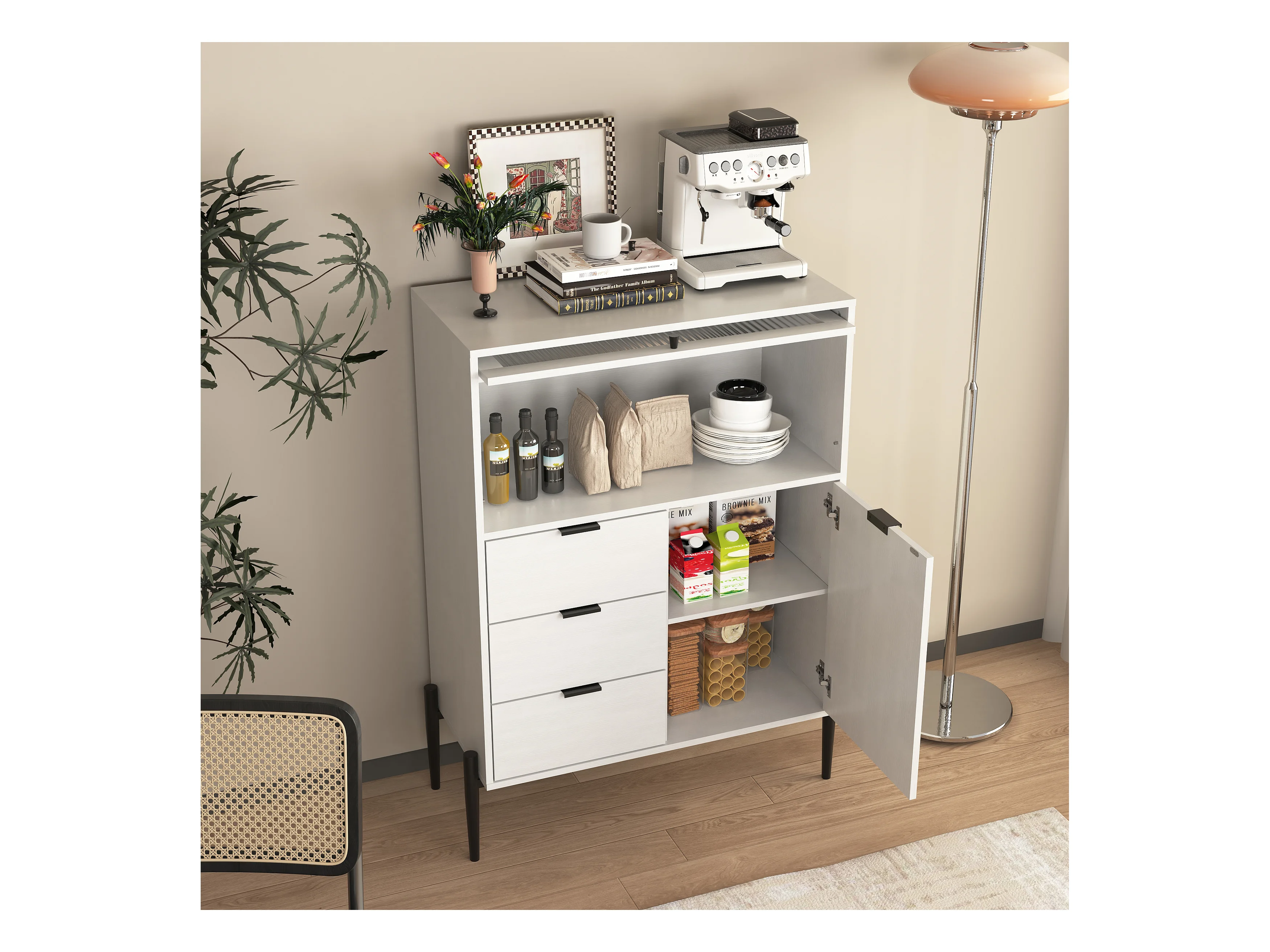 Aparador em MDF branco com 3 gavetas e 2 armários, cozinha sala de estar 120 cm