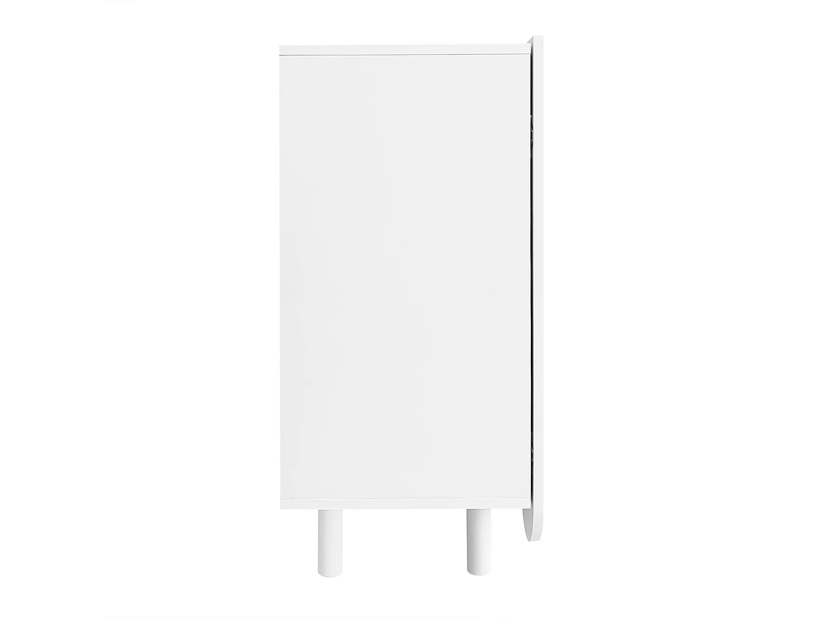Aparador de madeira com quatro portas e duas prateleiras, design sem puxadores, 120x37x80 cm, para sala de estar ou quarto, branco.
