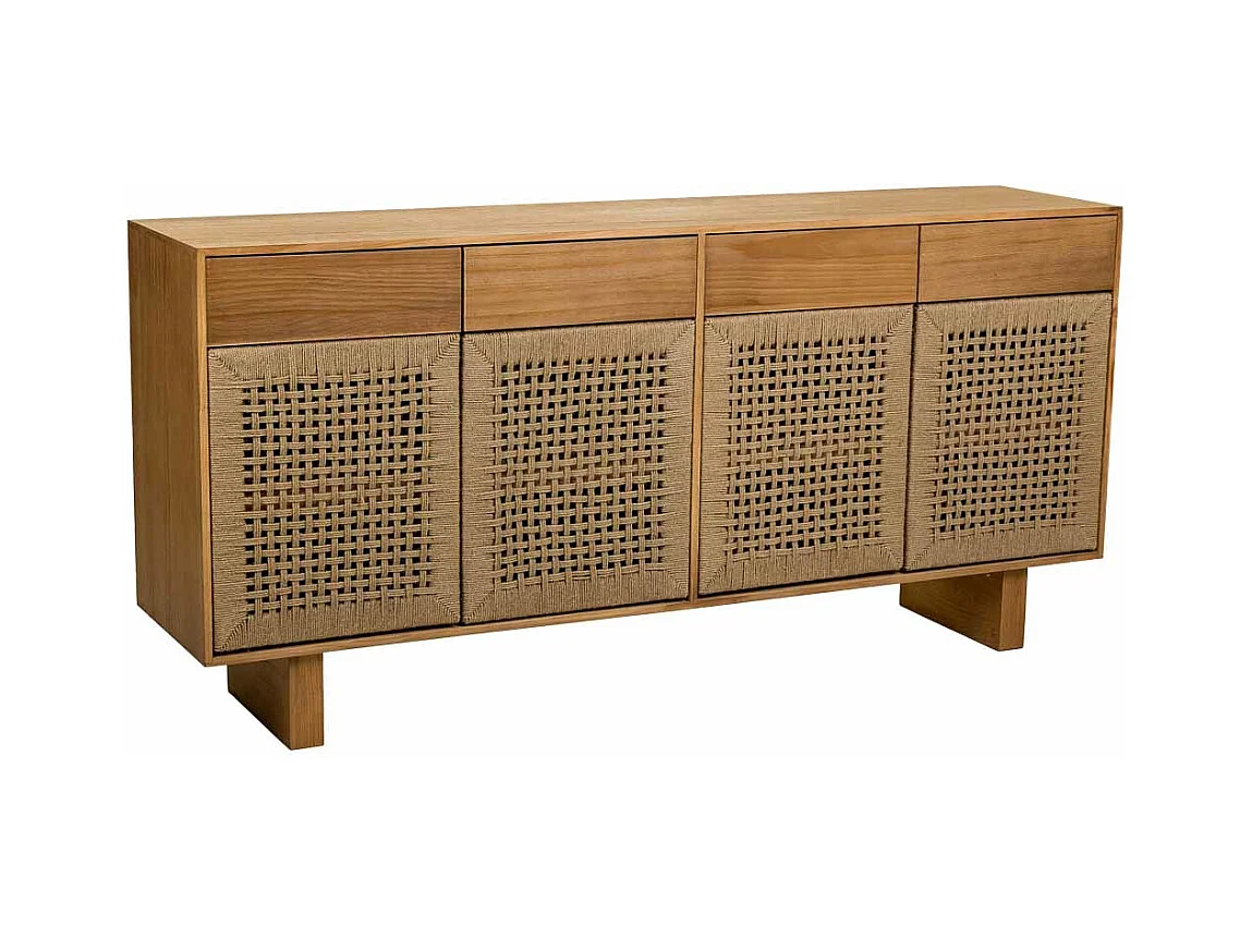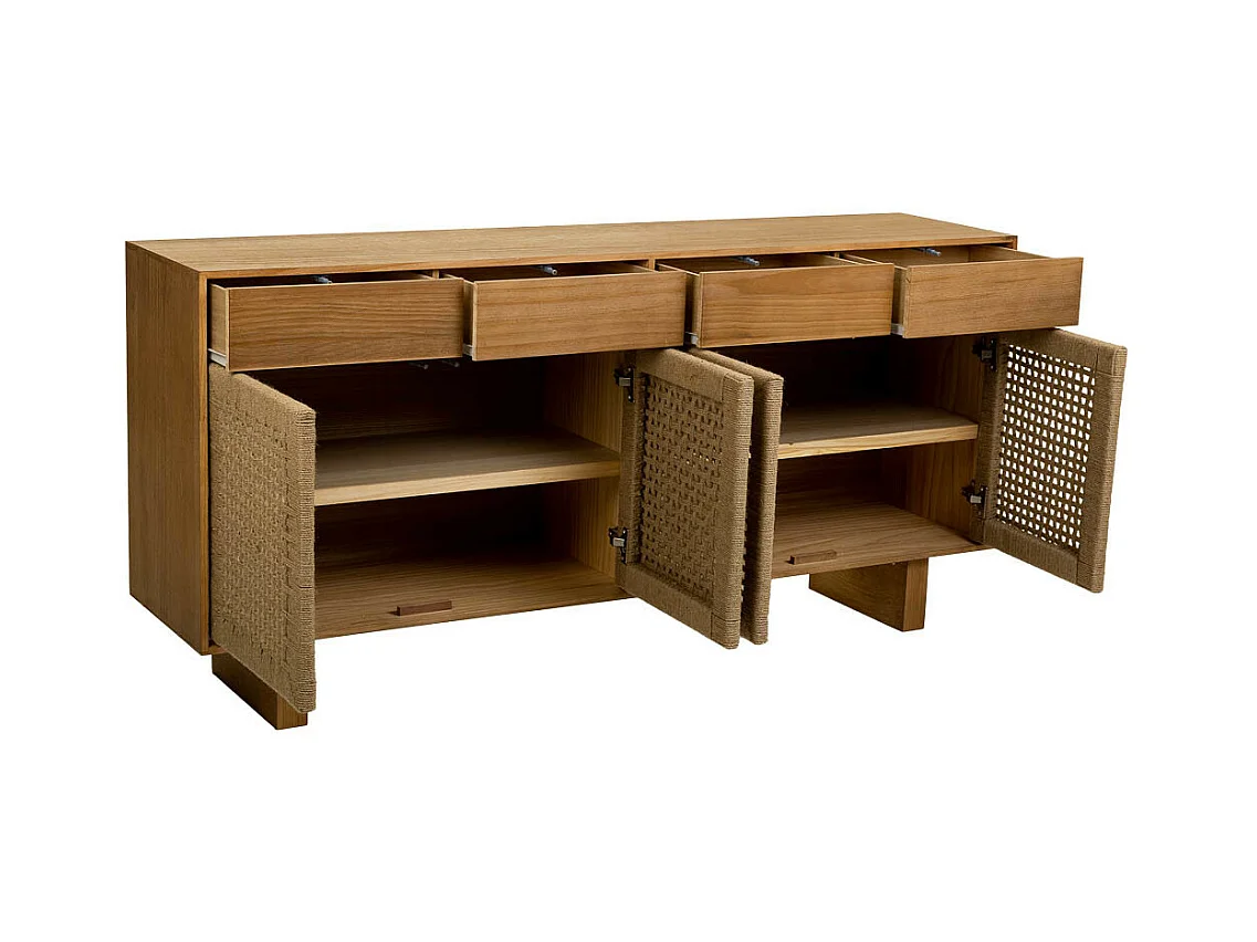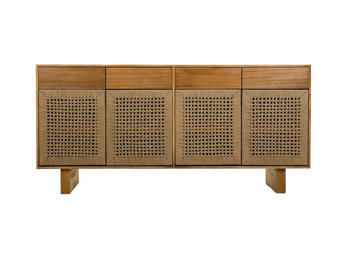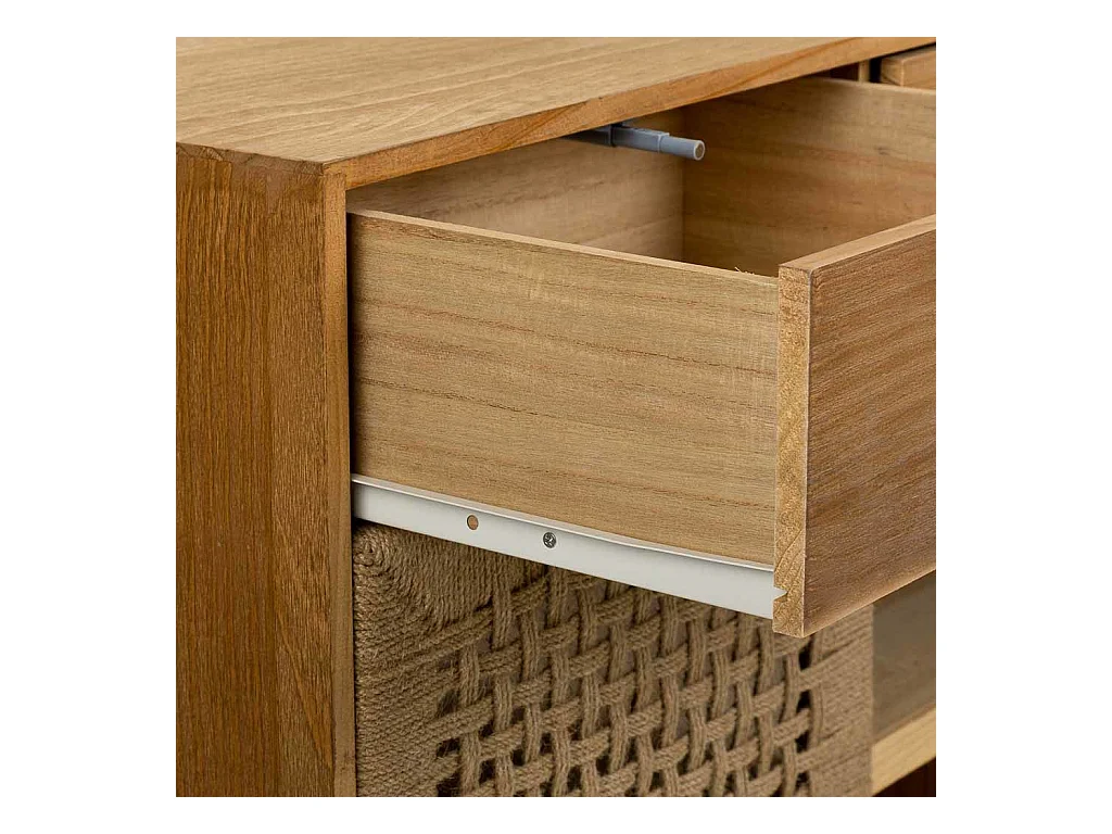 Aparador de madeira e corda entrançada castanho 160x36x75
