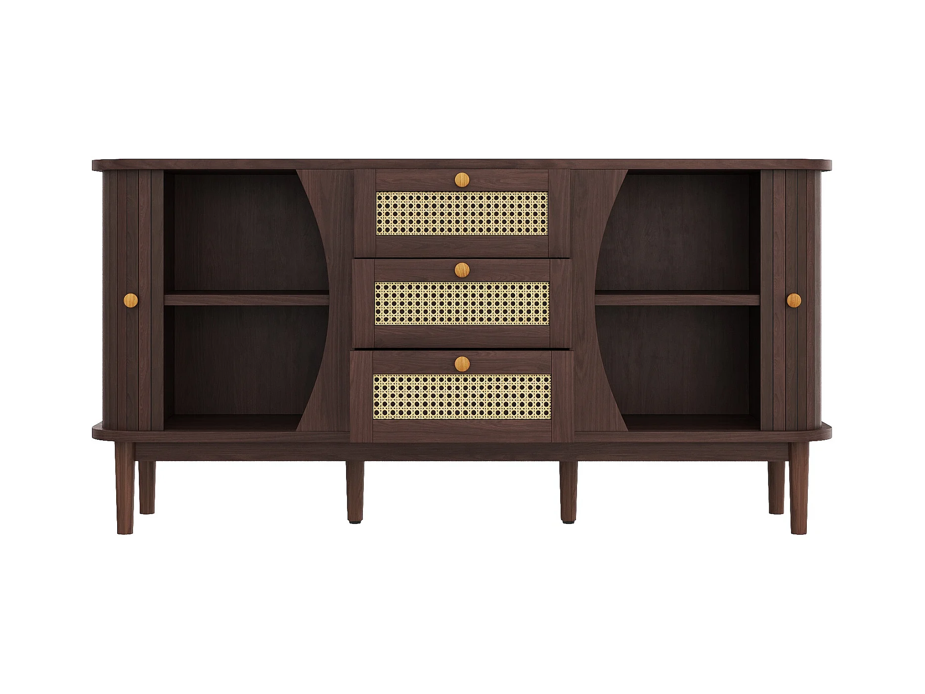 Aparador de 4 portas em madeira natural com painéis esculpidos e arrumação regulável para sala de estar e sala de jantar, 147 cm