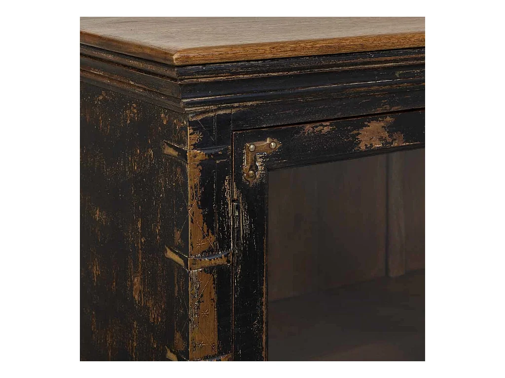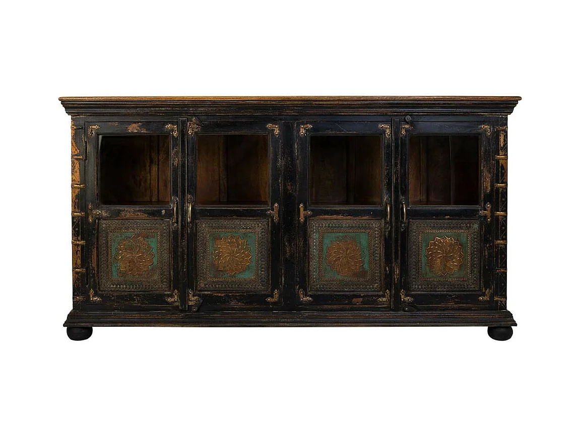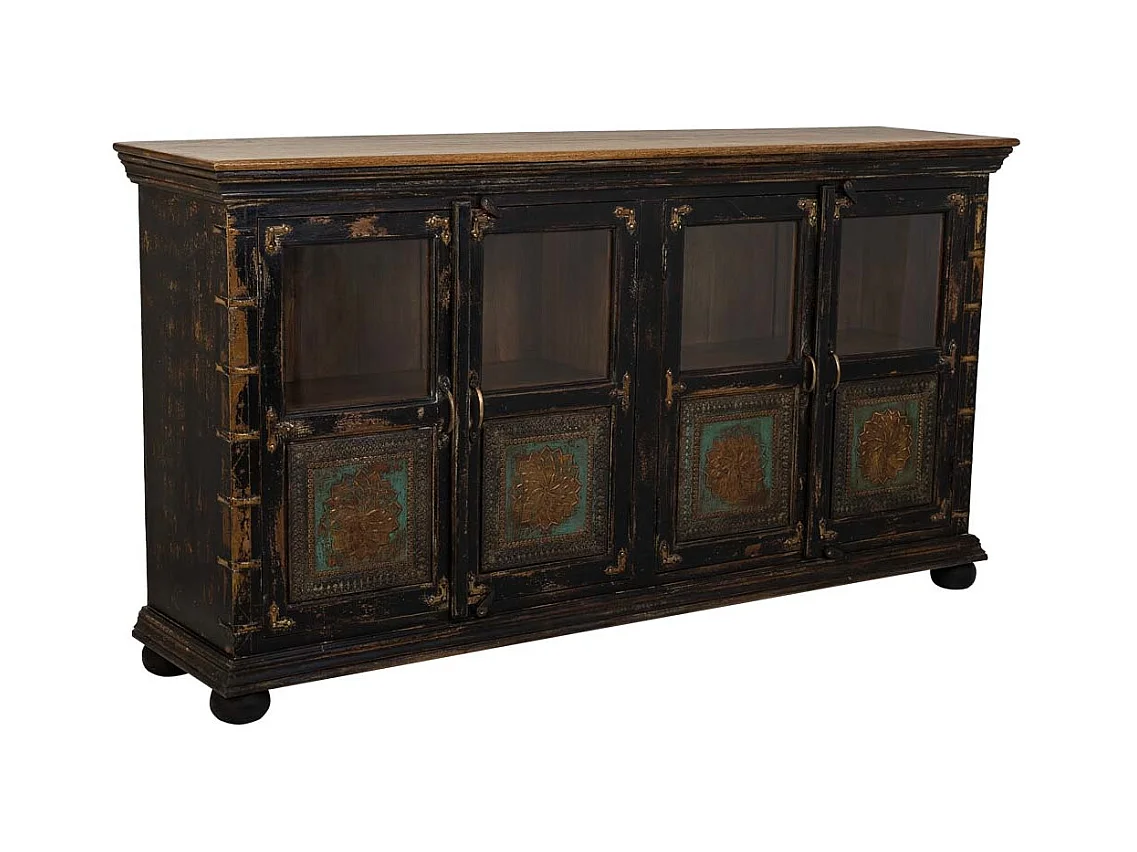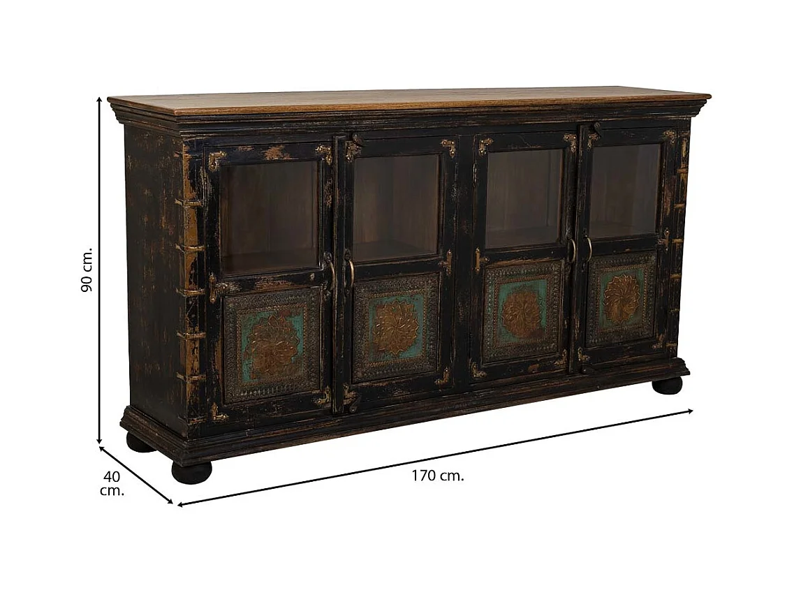 Aparador de madeira, vidro e metal marrom 170x40x90