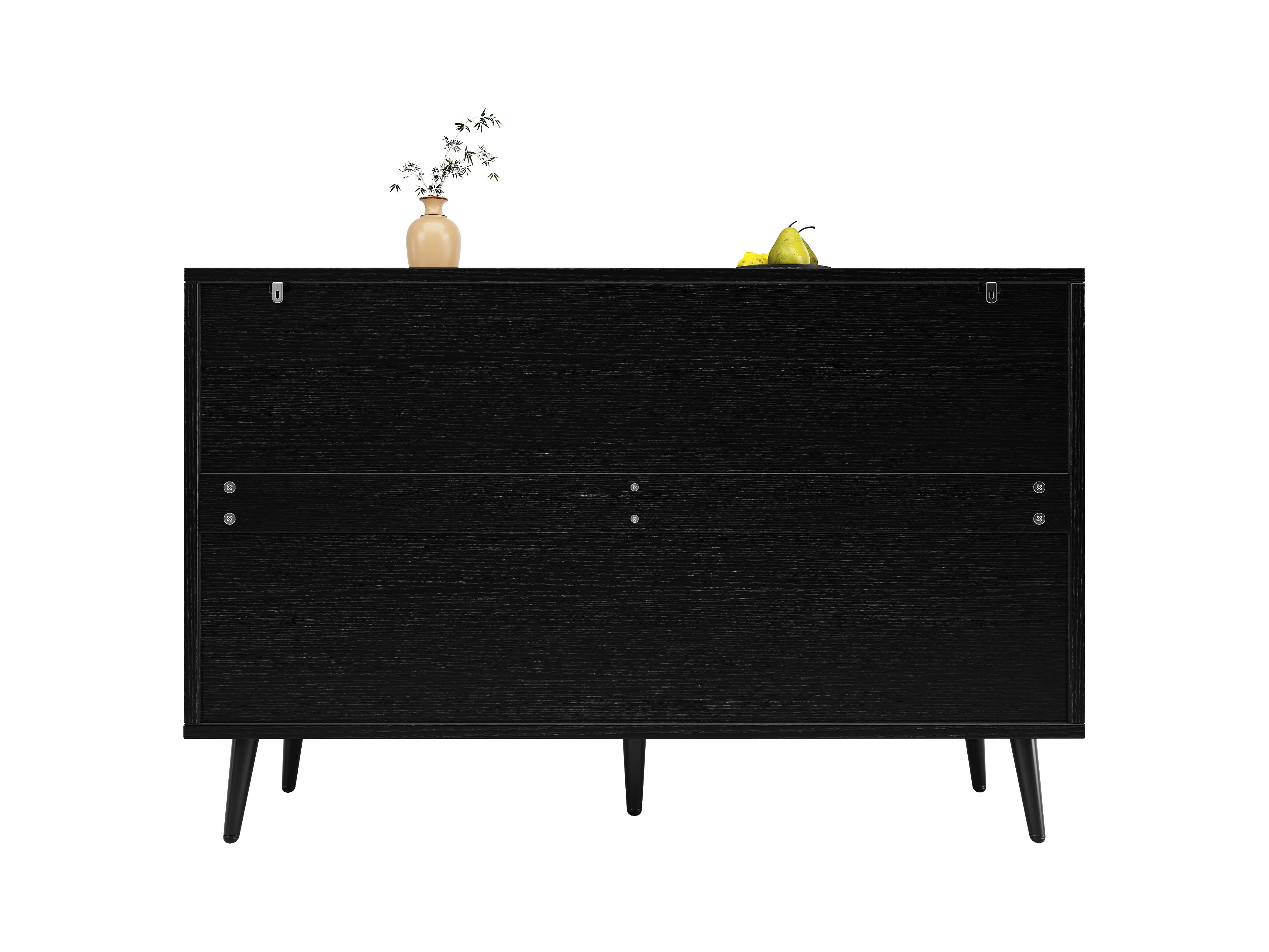 Aparador moderno em MDF preto 120 cm com 4 portas esculpidas para armazenamento na sala de estar e jantar