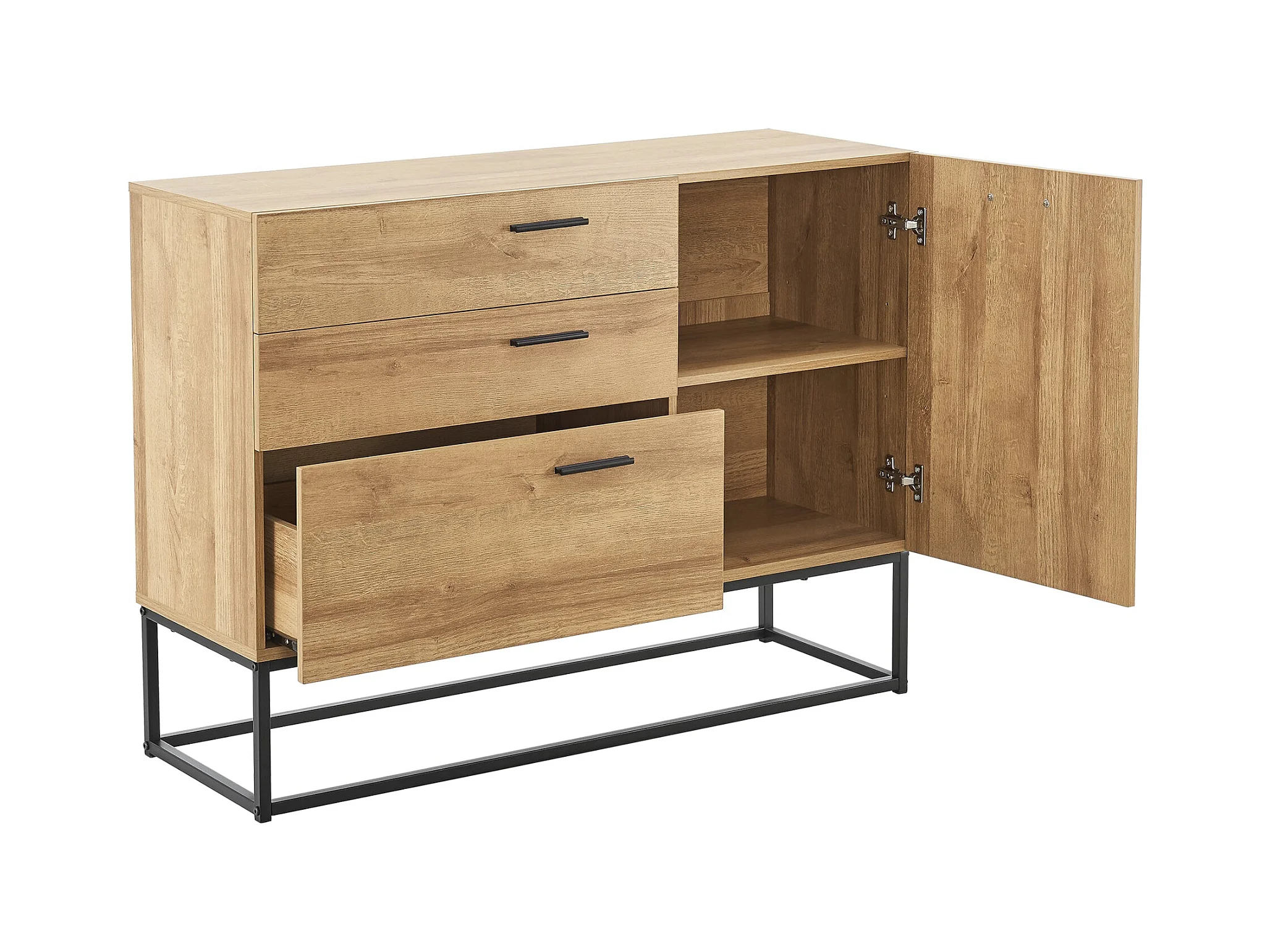 Buffet aparador console armário de armazenamento com gavetas de metal estilo industrial 93 cm preto 4402223