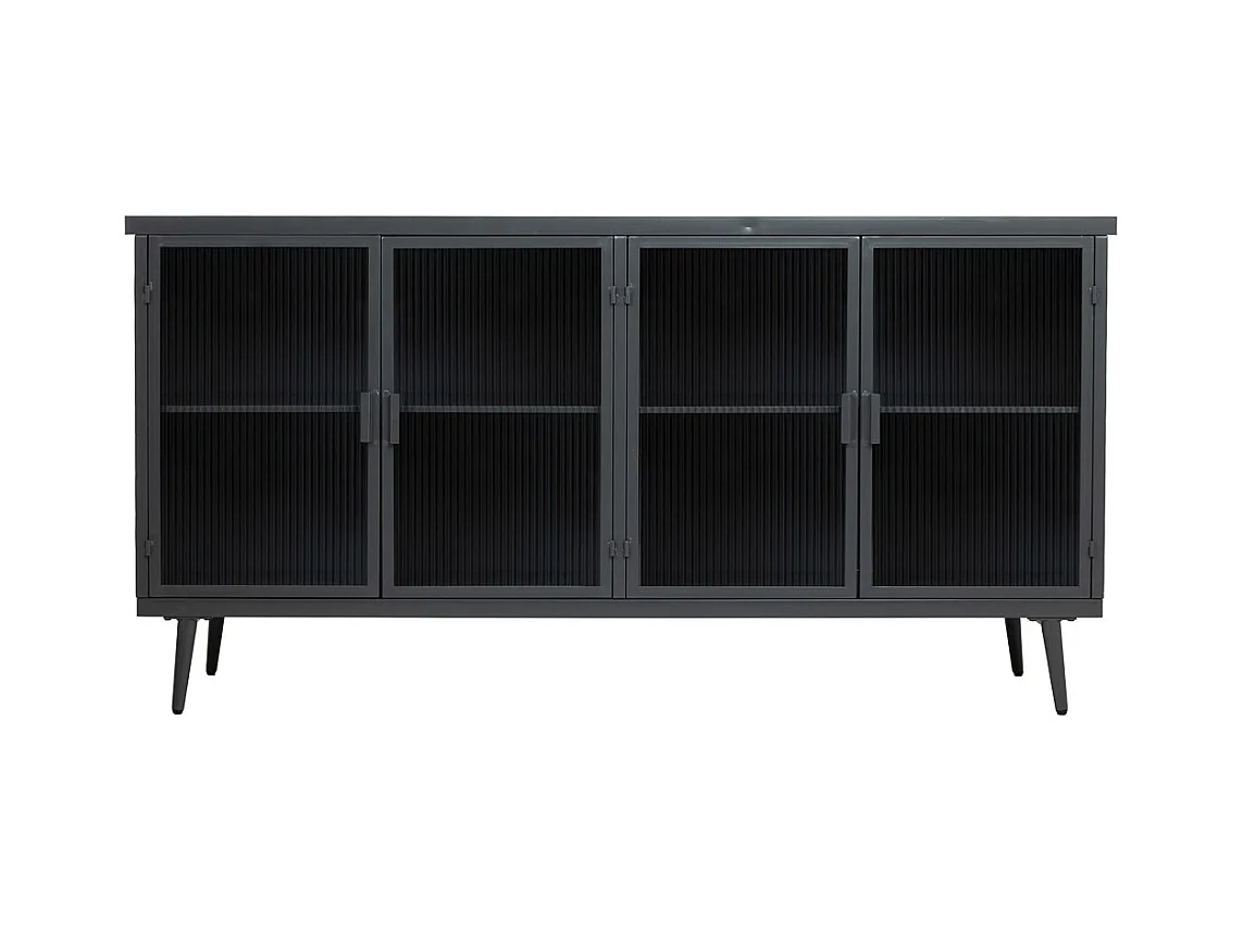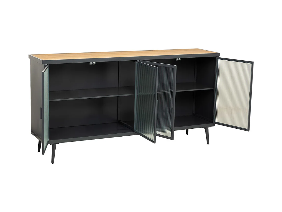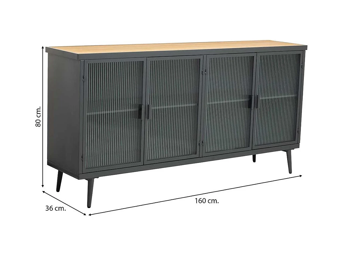 Aparador metal e madeira com vidro, preto 160x36x80h cm