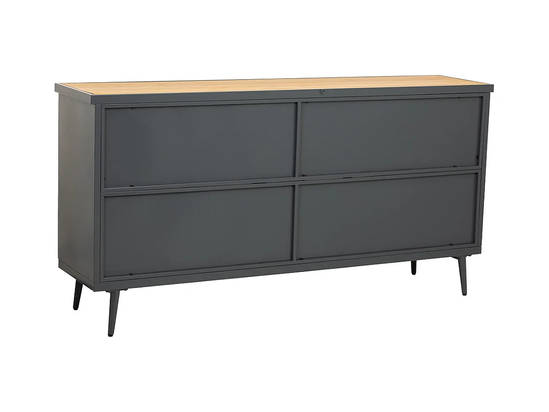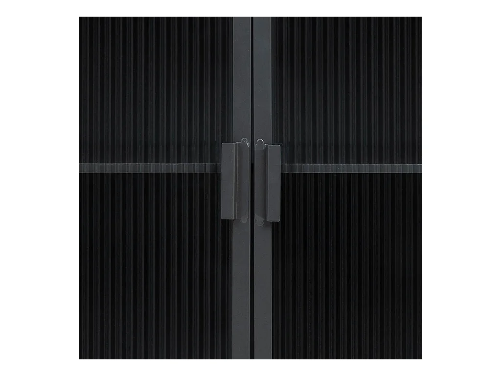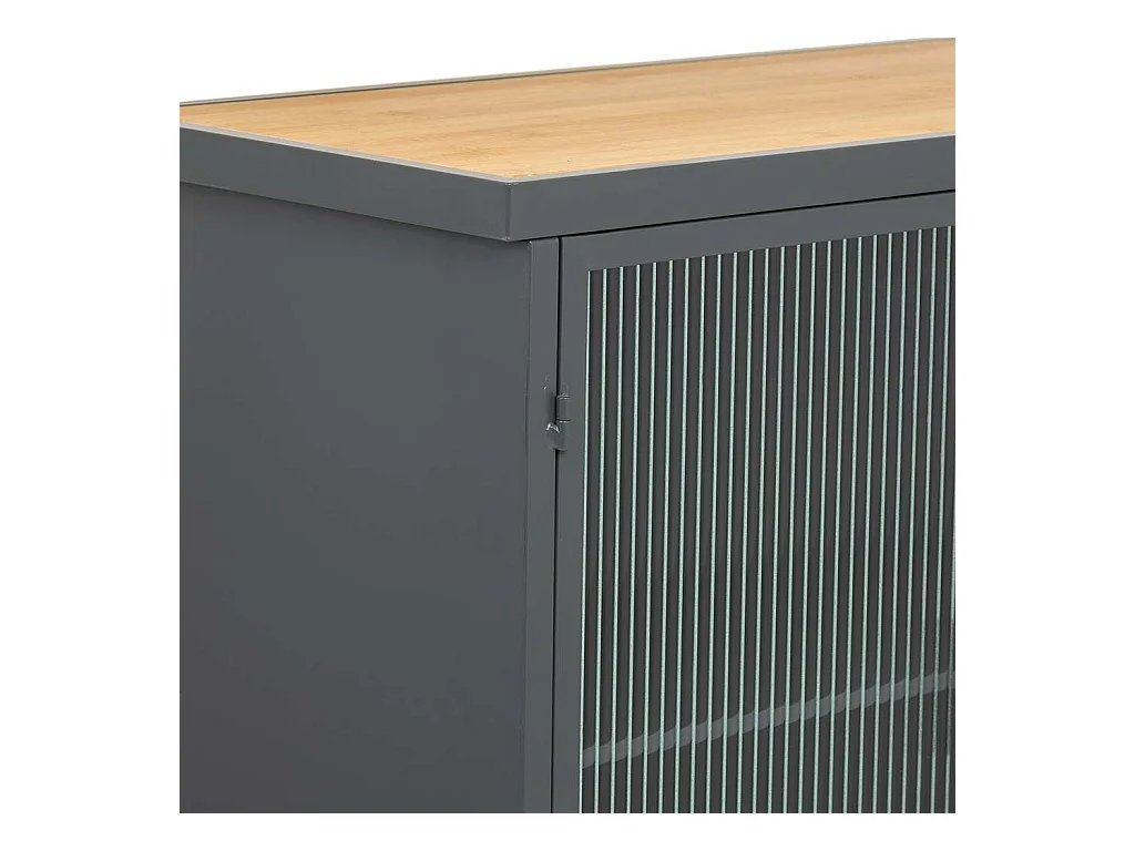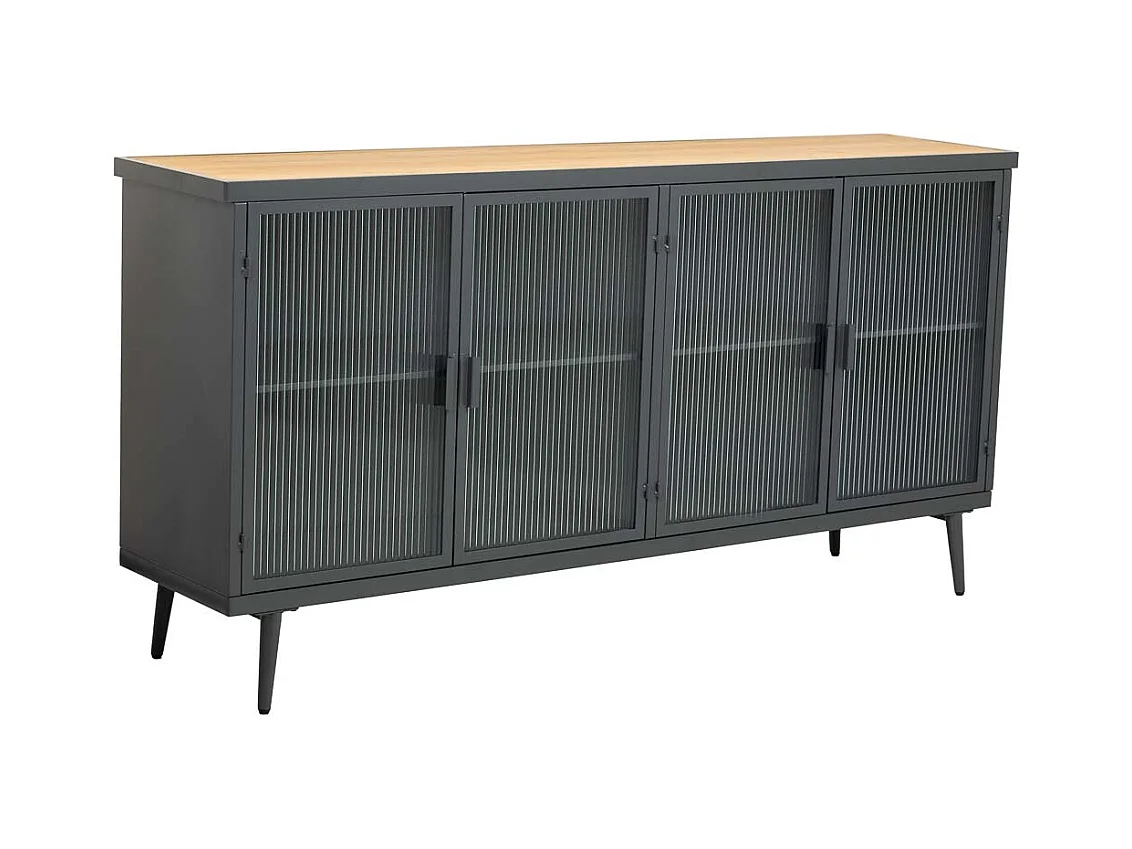Aparador metal e madeira com vidro, preto 160x36x80h cm
