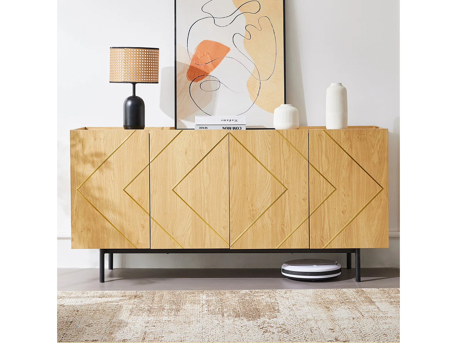Aparador de quatro portas com pés de metal, armário de arrumação, decoração para sala de estar, 160 x 40 x 78 cm