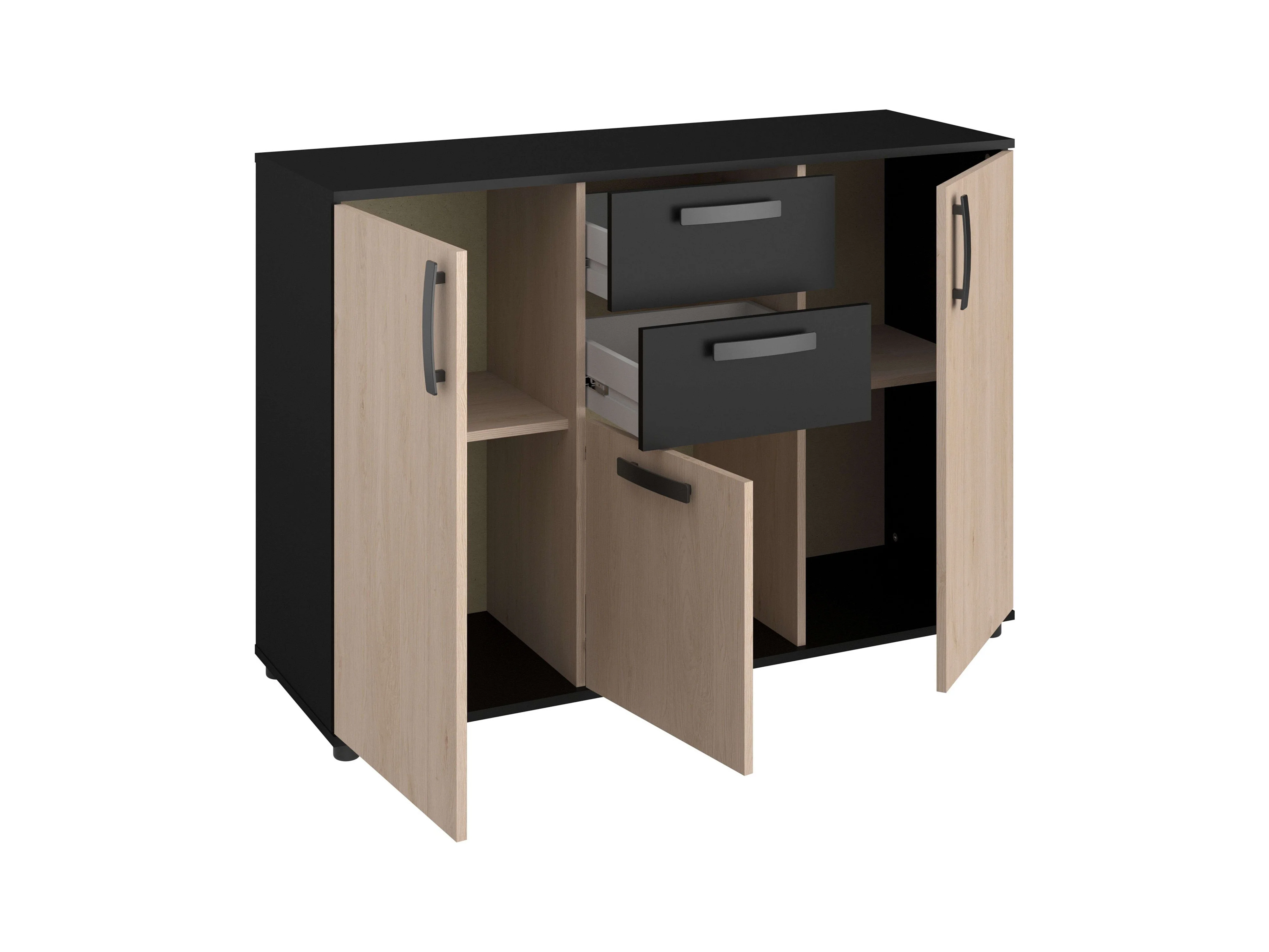 Aparador Arty com 2 portas e 3 prateleiras, carvalho Kronberg/preto, 70x110x39 cm