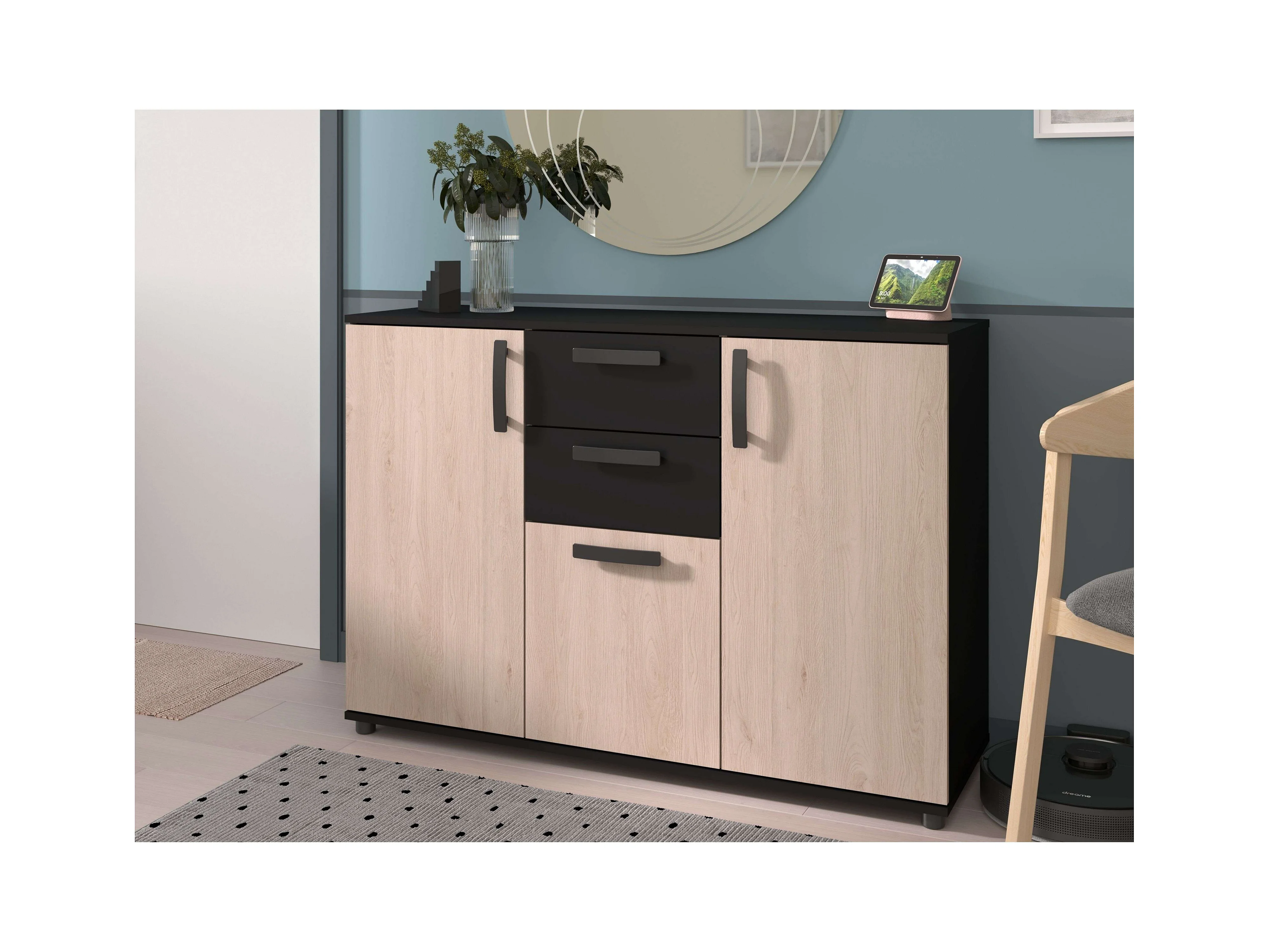 Aparador Craft com 2 portas e 3 gavetas, carvalho e preto, 72x40x153cm
