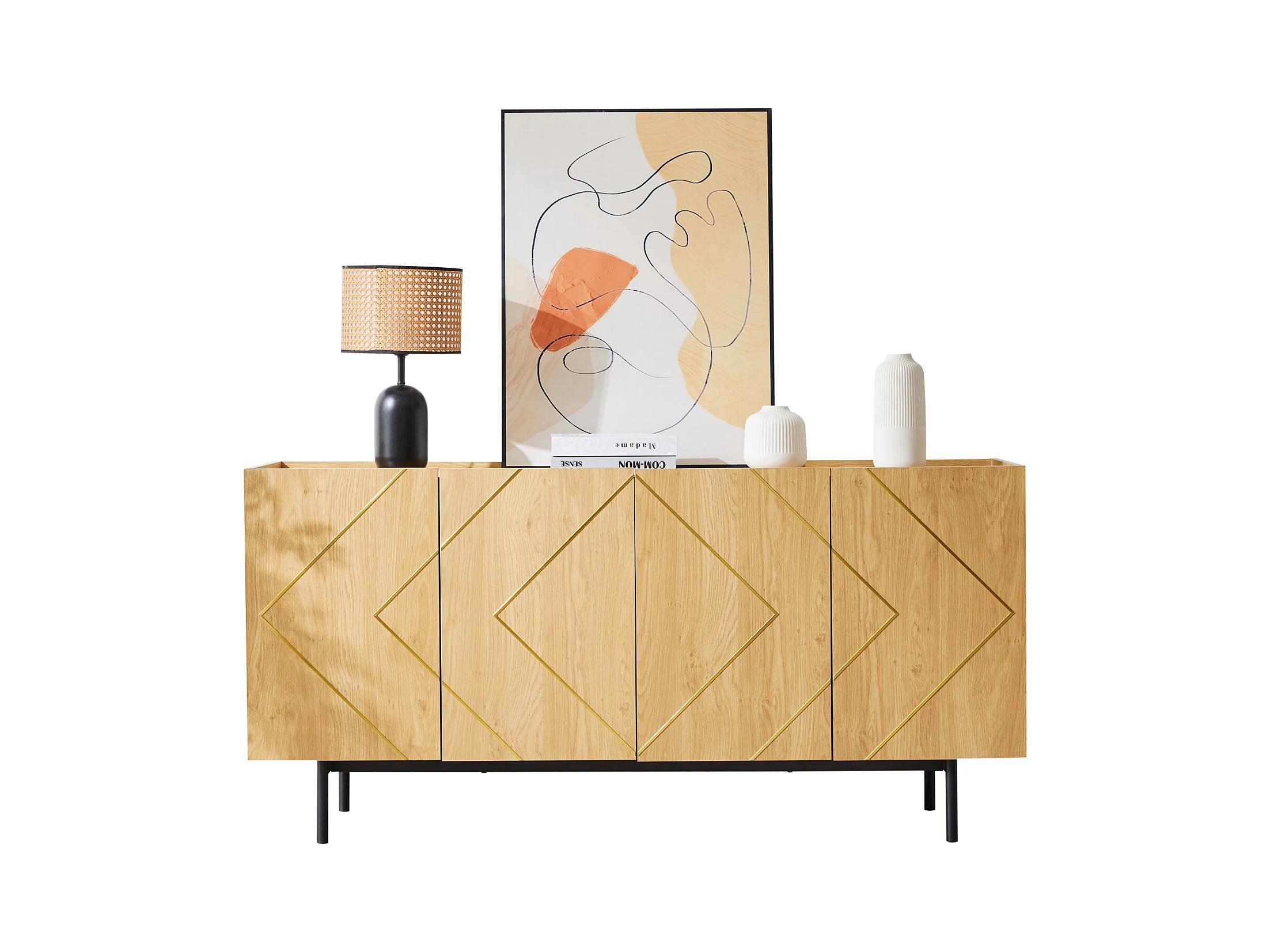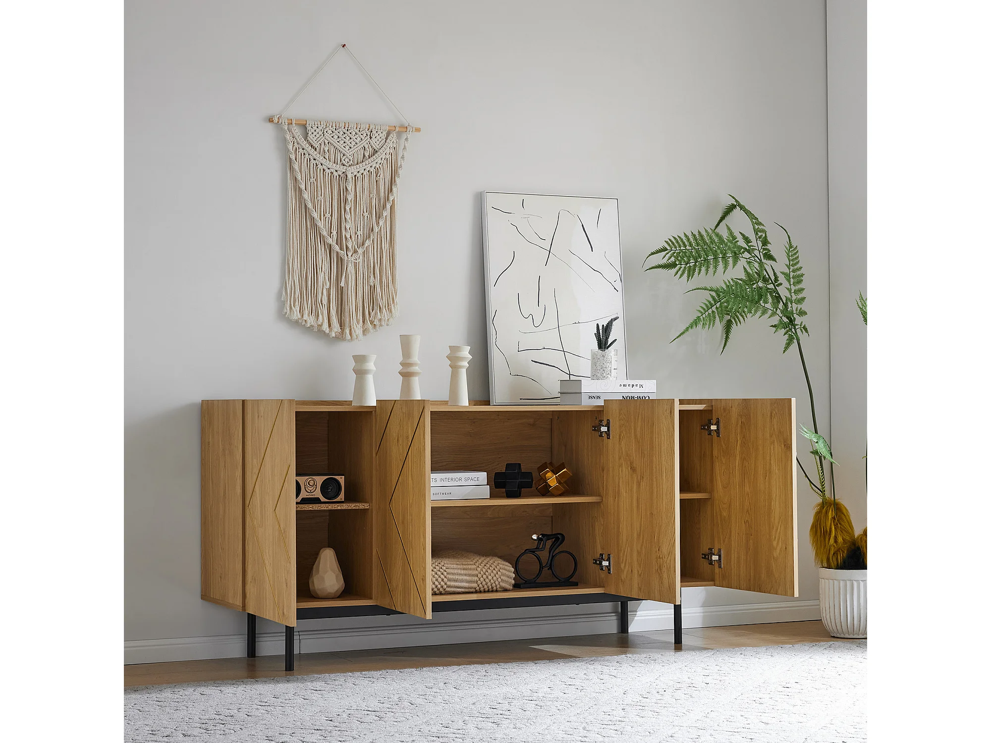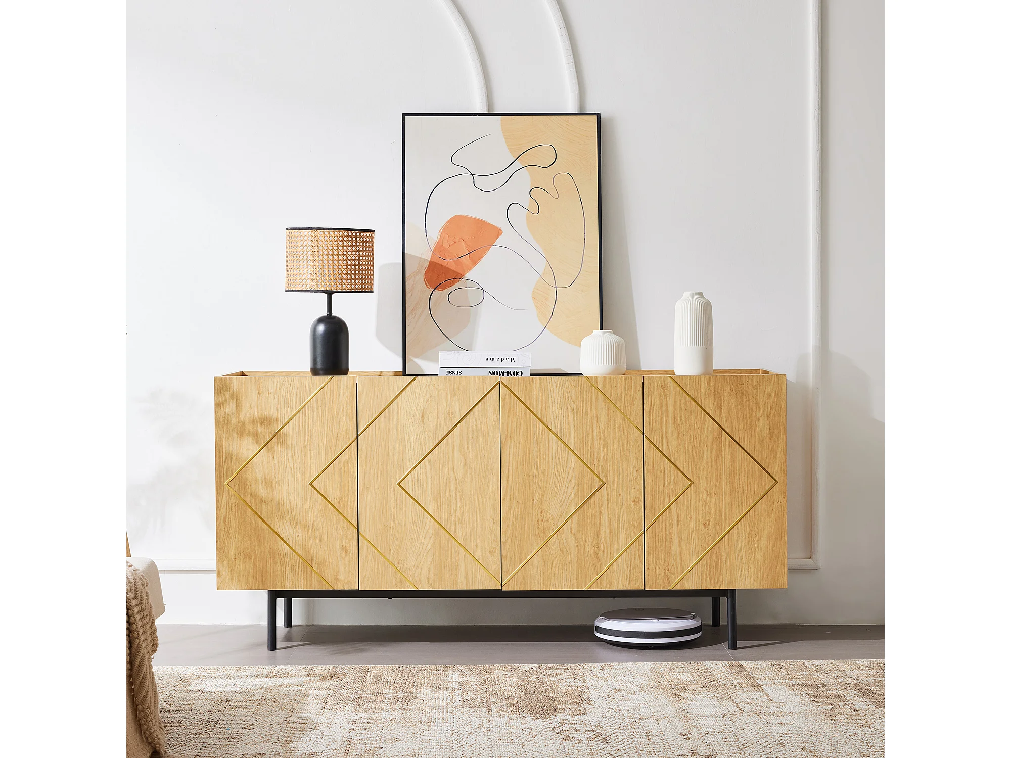 Aparador de sala, móvel de buffet com 4 portas - madeira natural - aglomerado - A 78 cm / L 160 cm / P 40 cm