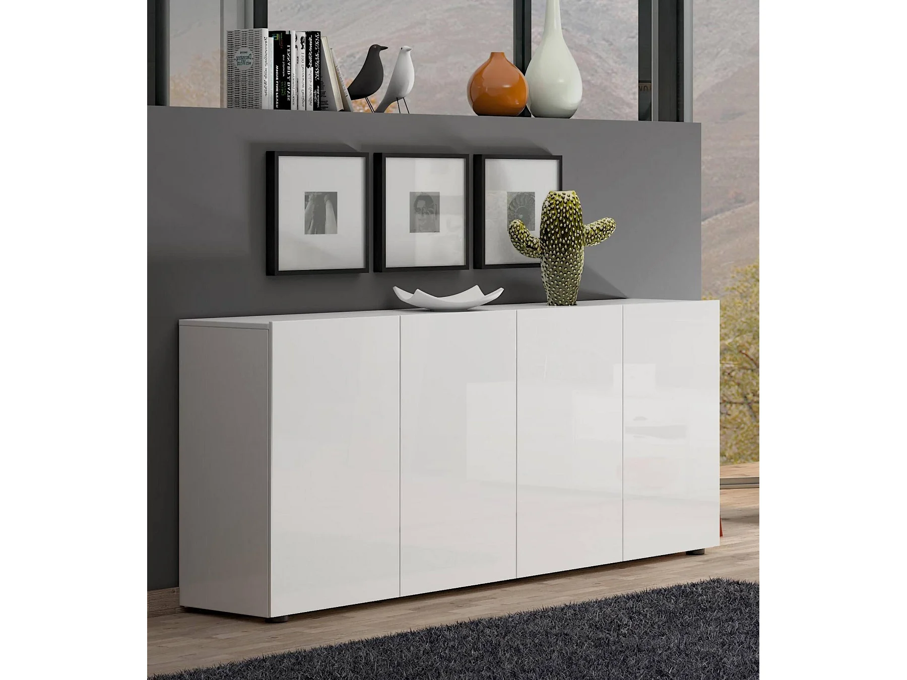 Aparador Dficarell, Buffet de sala de estar, Madia de sala de estar, Despensa de cozinha, Made in Italy, 180x38h79 cm, Branco brilhante