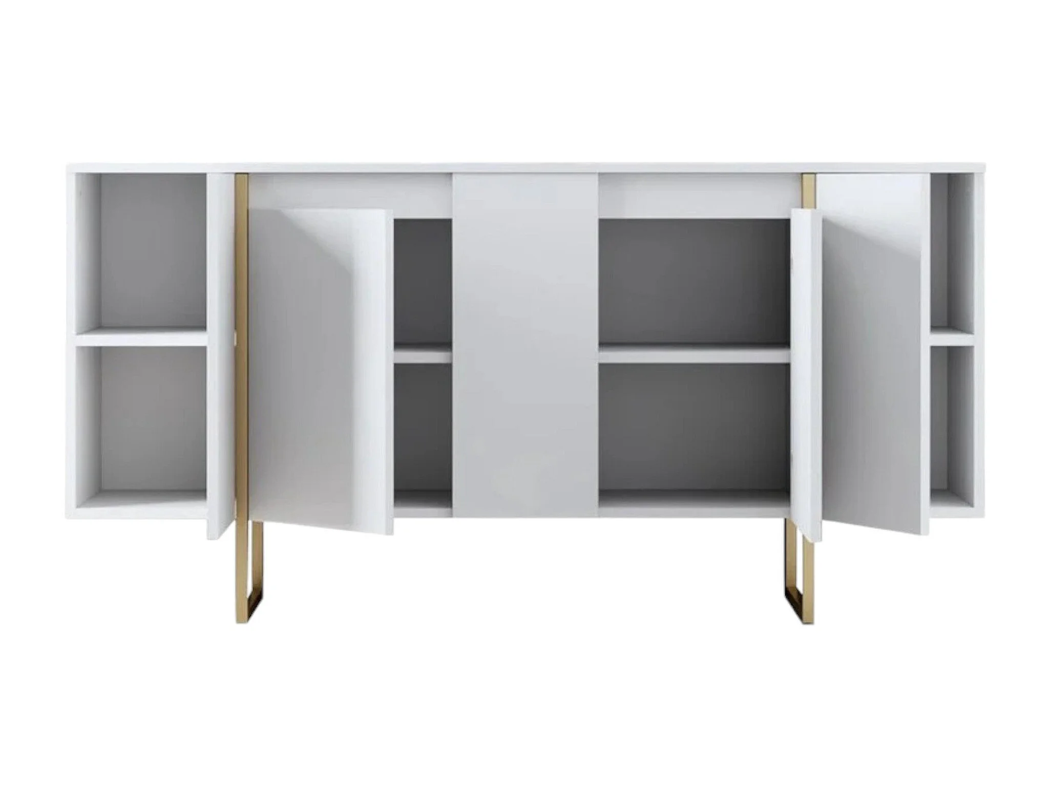 Aparador Dgarzitt, Buffet de sala, Aparador de sala, Despensa de cozinha, 160x35h80 cm, Branco e Dourado