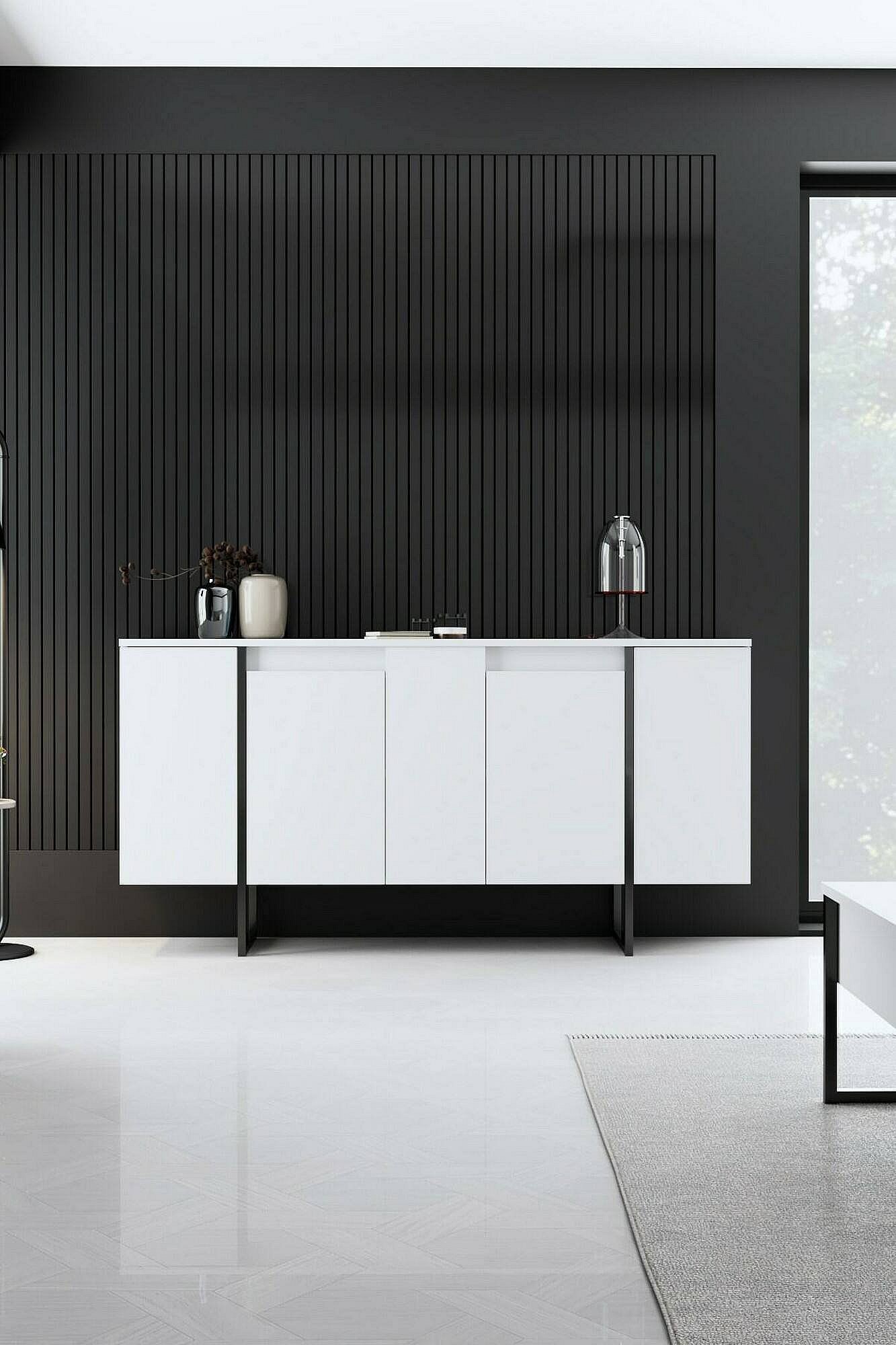 Aparador Dgarzitt, Buffet de SoggioRno, Sala de estar, Despensa de cozinha, 160x35h80 cm, Preto e Branco
